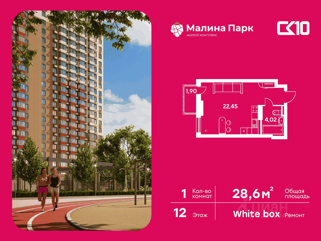 28 м² · Этаж 12 из 25