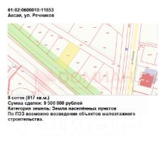 Арт. 113770870 Земельный участок 8 соток с домом 100 м² в Ростове-на-Дону Идеальное место для вашего бизнеса!Мечтаете о собственном участке земли в престижном районе Ростова-на-Дону? Предлагаем вашему вниманию уникальный земельный участок площадью 8 соток с расположенным на нем домом площадью 100 м².Преимущества:Идеальное расположение: Участок находится в районе с развитой инфраструктурой, в непосредственной близости от улицы Ленина, что обеспечивает отличную транспортную доступность и видимость.Правильная форма участка: Участок имеет правильную форму, что значительно упрощает планировку и строительство.Геологические изыскания: Проведены геологические изыскания, что гарантирует надежность и безопасность строительства.Инфраструктура: В шаговой доступности находятся все необходимые объекты инфраструктуры: магазины, школы, детские сады, медицинские учреждения и остановки общественного транспорта.Перспективы развития: Возможно увеличение площади участка за счет покупки соседнего участка, что открывает широкие возможности для расширения бизнеса.Инвестиционная привлекательность: Идеально подходит для строительства гостиницы, учитывая близость к Ростовскому зоопарку и Ростовской миле популярным местам отдыха и развлечений.Не упустите свой шанс приобрести уникальный земельный участок в перспективном районе Ростова-на-Дону!Звоните прямо сейчас, чтобы договориться об осмотре! Торг уместен после осмотра.Ключевые слова: #земельныйучасток# участокземли, #Ростов-на-Дону #дом, #8соток, #100м², #улицаЛенина, #геологическиеизыскания, #инфраструктура, #Ростовскийзоопарк, #Ростовскаямиля, #строительствогостиницы, #инвестиции, #продажа, #купитьучасток, #торг.