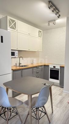 Сдается стильная студия с современным ремонтом в кирпичном доме 2023 года постройки. Просторная кухня оборудована всем необходимым: холодильник, плита, микроволновая печь и обеденный стол. В гостиной зоне установлен кондиционер и телевизор с кабельным/цифровым ТВ.Совмещенный санузел выполнен в современном стиле, оснащен стиральной машиной и качественной сантехникой. В квартире предусмотрены шкафы для хранения вещей.Дом расположен на 10 этаже из 25.Курение и проживание с детьми или животными запрещены.(Номер по каталогу I-2180)Предоплата за 1 месяцЗалог 10 000 ₽