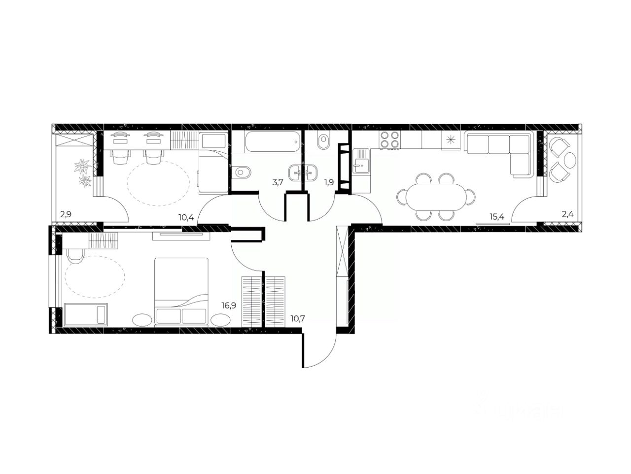Общая площадь61,7 м2