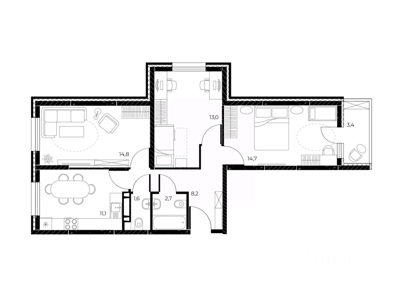Общая площадь67,8 м2