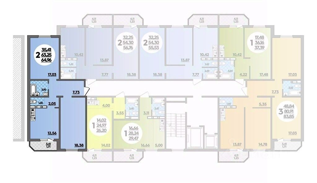 Общая площадь64,96 м2