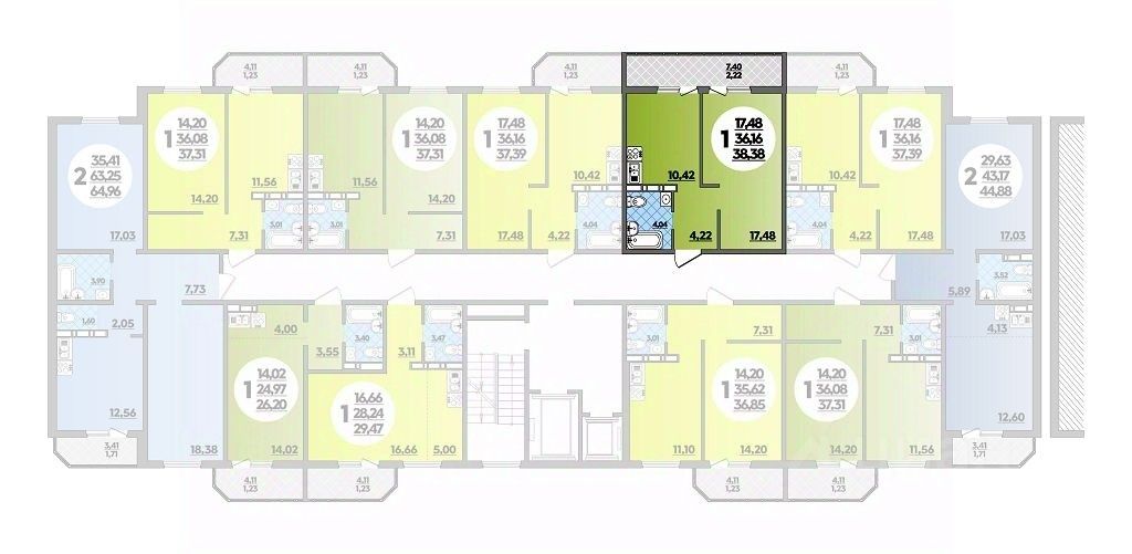 Общая площадь38,38 м2