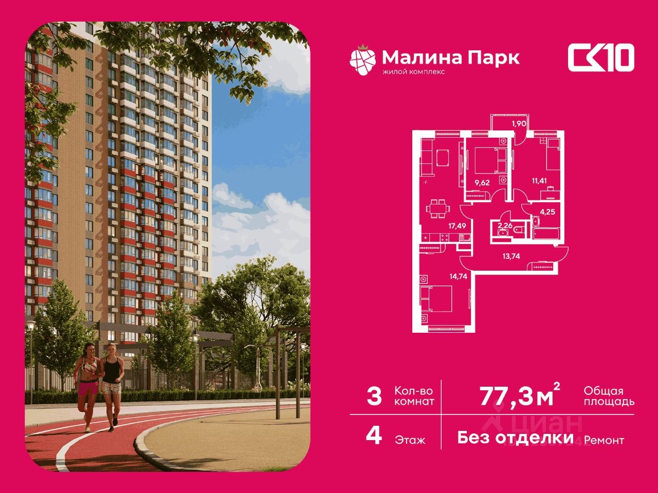 Продаётся 3-комнатная квартира в строящемся доме (Поз. 2-3), срок сдачи: II-кв. 2026, общей площадью 77.3 кв.м., на 4 этаже. Новый жилой комплекс ''Малина парк'' от группы компаний ''СК10'' расположен по адресу: г. Ростов-на-Дону, по ул. Малиновского.