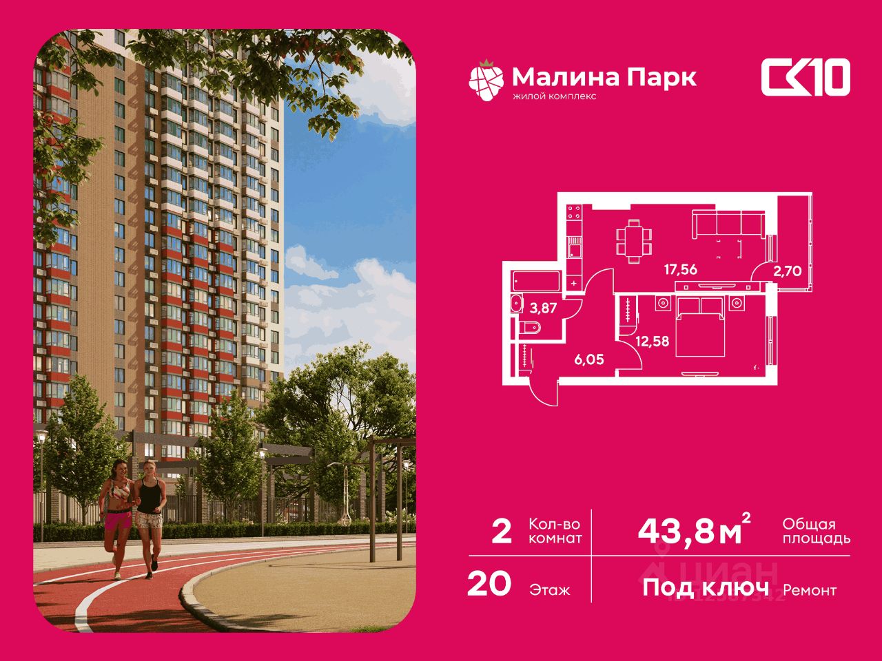 Продаётся 2-комнатная квартира в строящемся доме (Поз. 2-3), срок сдачи: II-кв. 2026, общей площадью 43.82 кв.м., на 20 этаже. Новый жилой комплекс ''Малина парк'' от группы компаний ''СК10'' расположен по адресу: г. Ростов-на-Дону, по ул. Малиновского.