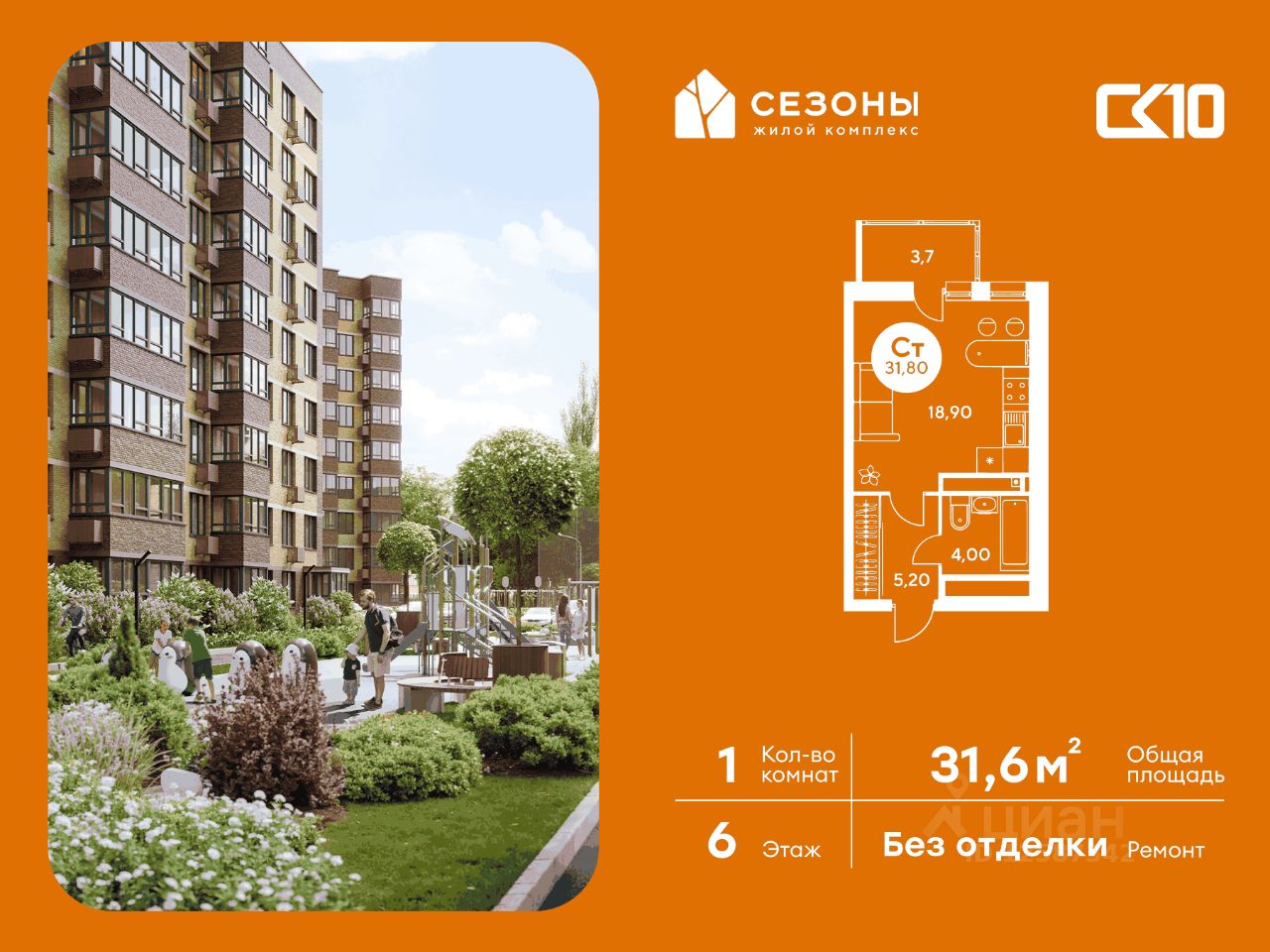 Продаётся студия в строящемся доме (Дом 1), срок сдачи: IV-кв. 2026, общей площадью 31.55 кв.м., на 6 этаже. ЖК Сезоны 1 это уникальный проект, созданный вдалеке от шума и суеты мегаполиса. Радоваться каждому дню в любом возрасте здесь будет проще - внутреннее состояние удовольствия поддерживает окружающая обстановка.