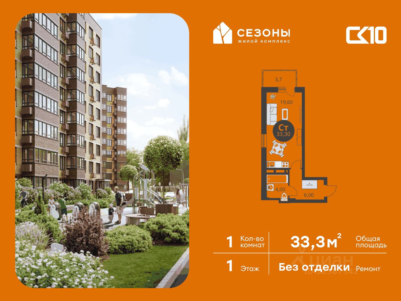Продаётся студия в строящемся доме (Дом 4), срок сдачи: IV-кв. 2026, общей площадью 33.3 кв.м., на 1 этаже. ЖК Сезоны 1 это уникальный проект, созданный вдалеке от шума и суеты мегаполиса. Радоваться каждому дню в любом возрасте здесь будет проще - внутреннее состояние удовольствия поддерживает окружающая обстановка.