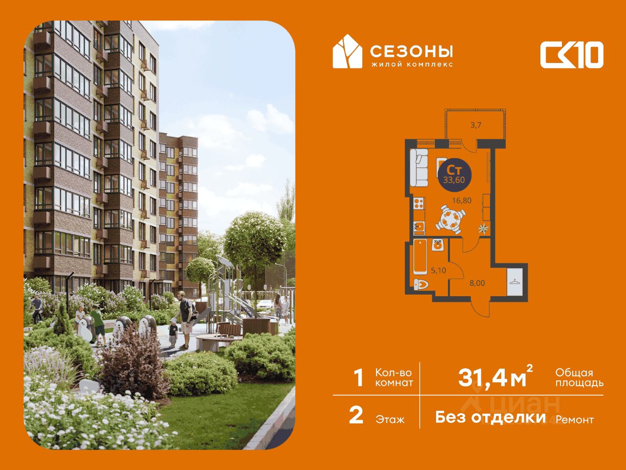 Продаётся студия в строящемся доме (Дом 4), срок сдачи: IV-кв. 2026, общей площадью 31.45 кв.м., на 2 этаже. ЖК Сезоны 1 это уникальный проект, созданный вдалеке от шума и суеты мегаполиса. Радоваться каждому дню в любом возрасте здесь будет проще - внутреннее состояние удовольствия поддерживает окружающая обстановка.