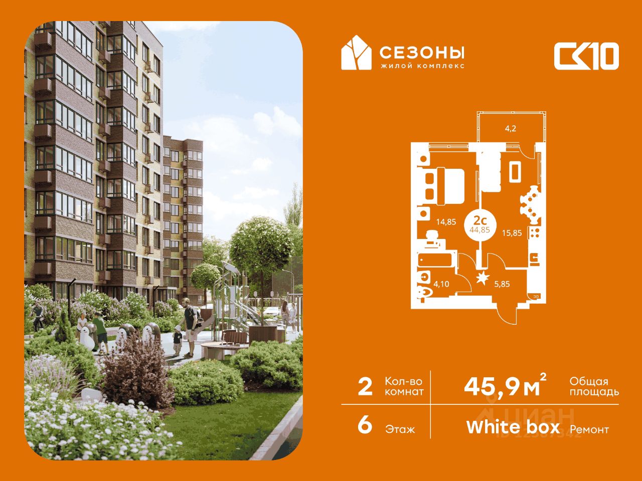 Продаётся 2-комнатная квартира в строящемся доме (Дом 3), срок сдачи: IV-кв. 2026, общей площадью 45.9 кв.м., на 6 этаже. ЖК Сезоны 1 это уникальный проект, созданный вдалеке от шума и суеты мегаполиса. Радоваться каждому дню в любом возрасте здесь будет проще - внутреннее состояние удовольствия поддерживает окружающая обстановка.