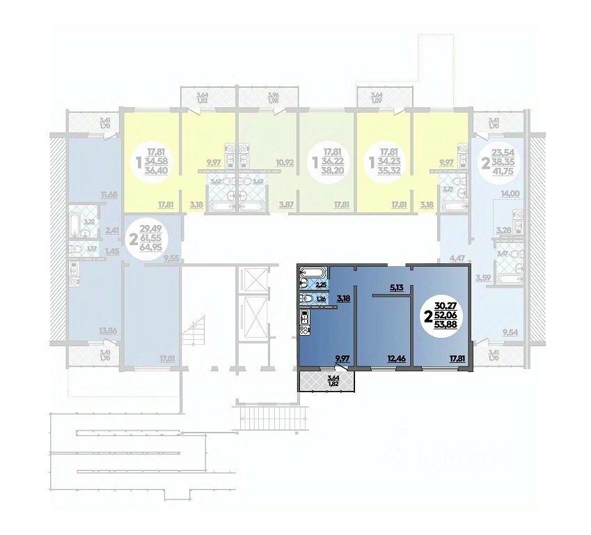 Общая площадь53,88 м2