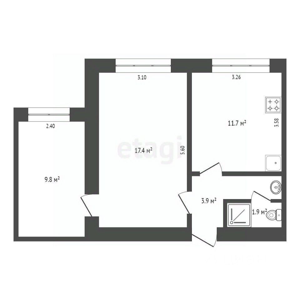 Площадь квартиры 44.7кв.м. Места достаточно, чтобы воплотить свои дизайнерские фантазии в жизнь и сделать ремонт на свой вкус.