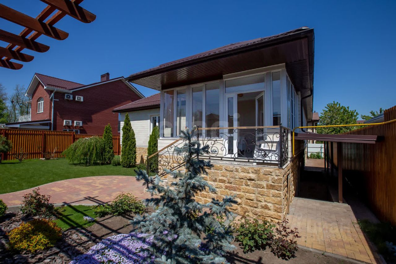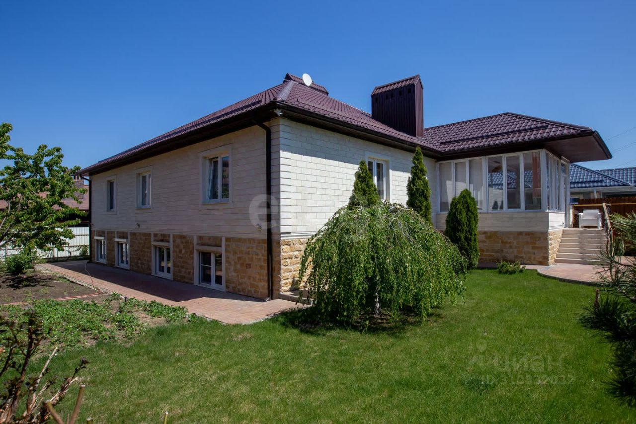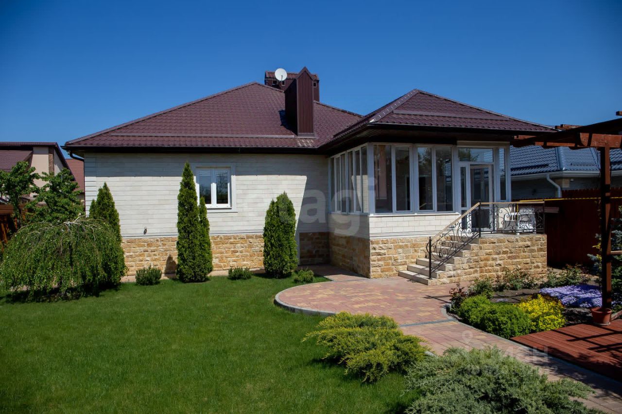 Просторный, уютный, одноэтажный дом, с цокольным этажом, на участке 8.8 соток, в тихом месте, элитного поселка х. Камышеваха, общей площадью 349 кв.м. Дом построен в 2019 году, на фундаментной, монолитной плите по технологии каркасно-монолитного строительства, с применением системы несъёмной опалубки из древобетона от компании Durisol. В дом ведут два отдельных входа: парадный и в цокольный этаж. Внешняя отделка стен выполнена из Акушинского песчаника и доломита (дагестанский камень), с дополнительным утеплением стен пеноплексом (дом очень тёплый и энергоэффективный). В доме 8 комнат в т.ч.: 3 спальни, гостевая комната, кабинет, просторный холл, две кухни, гостинная с домашним кинотеатром, бильярдная (русский бильярд, стол 12 футов), библиотека, каминный зал, хаммам (отделка турецким мрамором), три санузла: с угловой ванной и двумя душевыми кабинами. Приусадебный участок зонально разделен на две части: декоративная часть с деревьями, кустарниками и газоном, и садово- огородная с плодоносящими деревьями, везде смонтирована система автополива. Реализована система умный дом, с управлением климатом, и система видеонаблюдения. Есть просторная летняя веранда, с панорамным остеклением, мастерская, мангальная зона, пергола из лиственницы, капитальный гараж на две машины, с раздельными автоматическими гаражными воротами и парковочное место во дворе с автоматическими откатными воротами. Один взрослый собственник. Владение более 5 лет. Дом строился добротно, с использованием дорогих материалов, для комфортного проживания- всё продумано до мелочей!