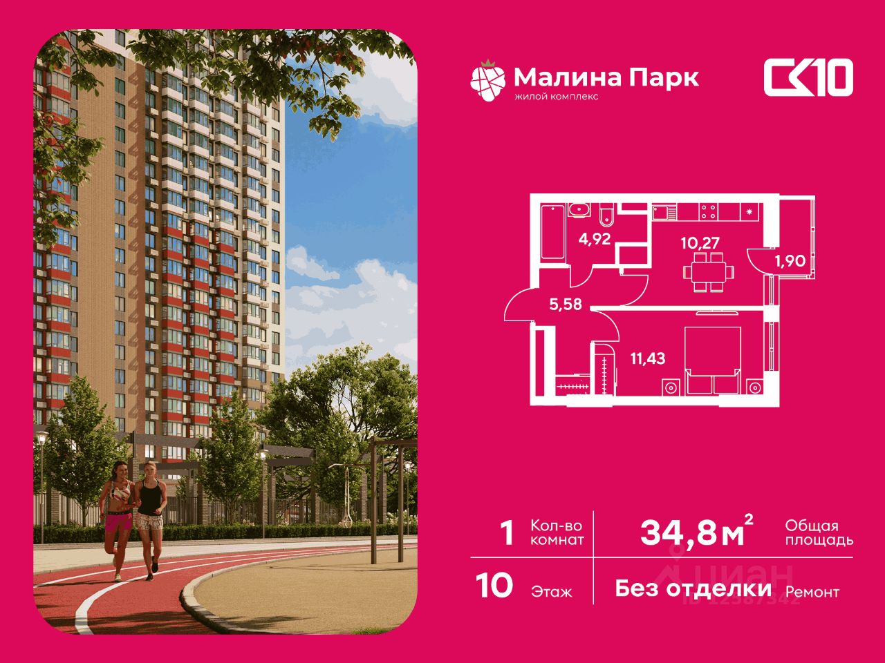 Продаётся 1-комнатная квартира в строящемся доме (Поз. 2-3), срок сдачи: II-кв. 2026, общей площадью 34.84 кв.м., на 10 этаже. Новый жилой комплекс ''Малина парк'' от группы компаний ''СК10'' расположен по адресу: г. Ростов-на-Дону, по ул. Малиновского.