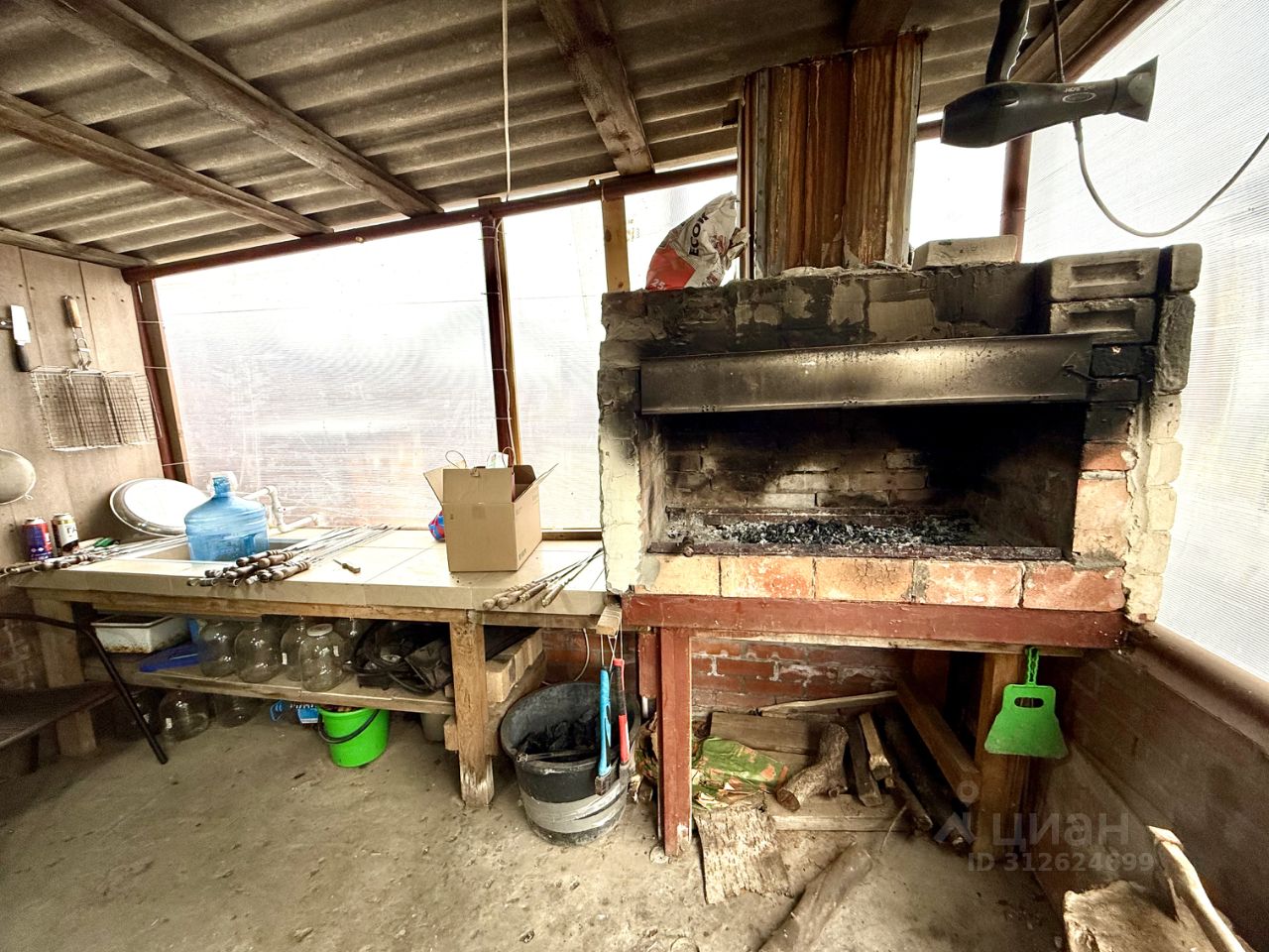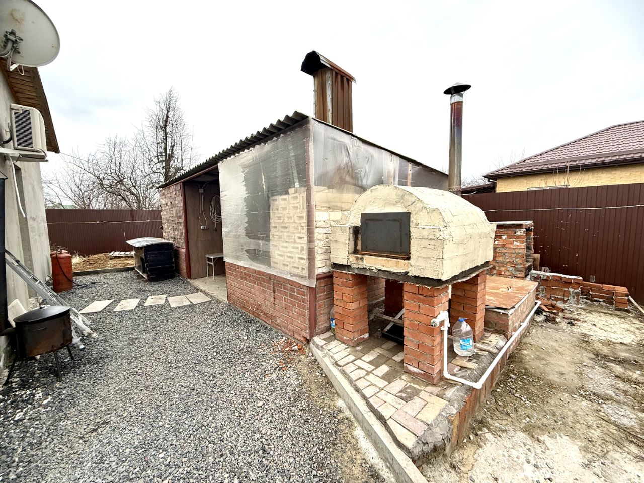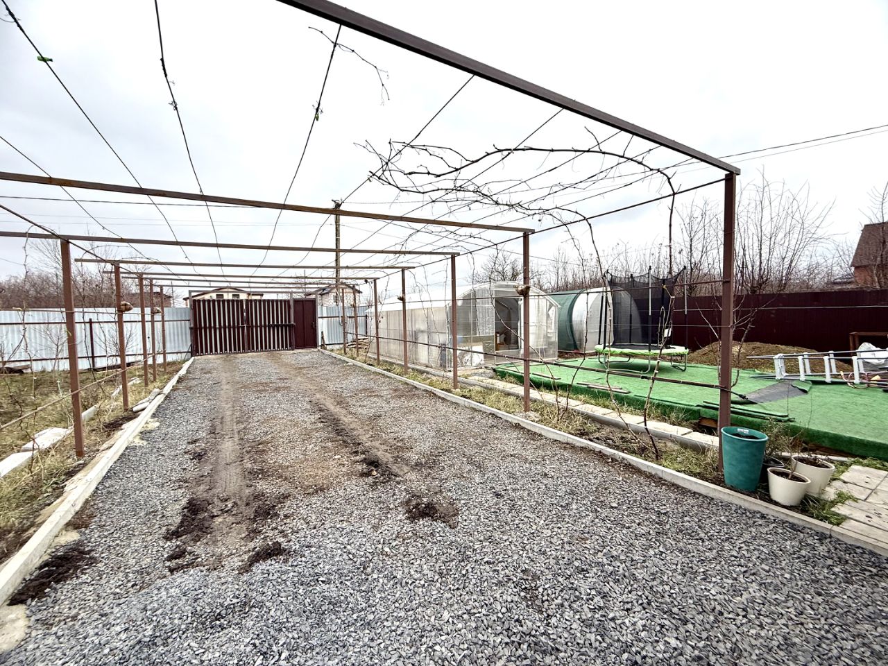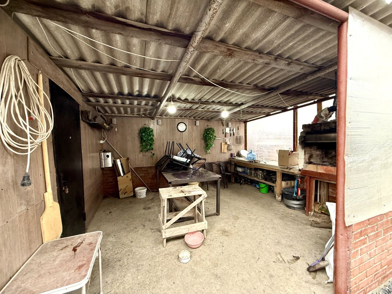 Ухоженный участок 6 соток огорожен забором по всему периметру. Перед домом есть место для отдыха. На участке имеется 2 теплицы, место для посадки цветов и деревьем, зона барбекю с мангалом, летняя кухня, хоз.постройка, уличный туалет.