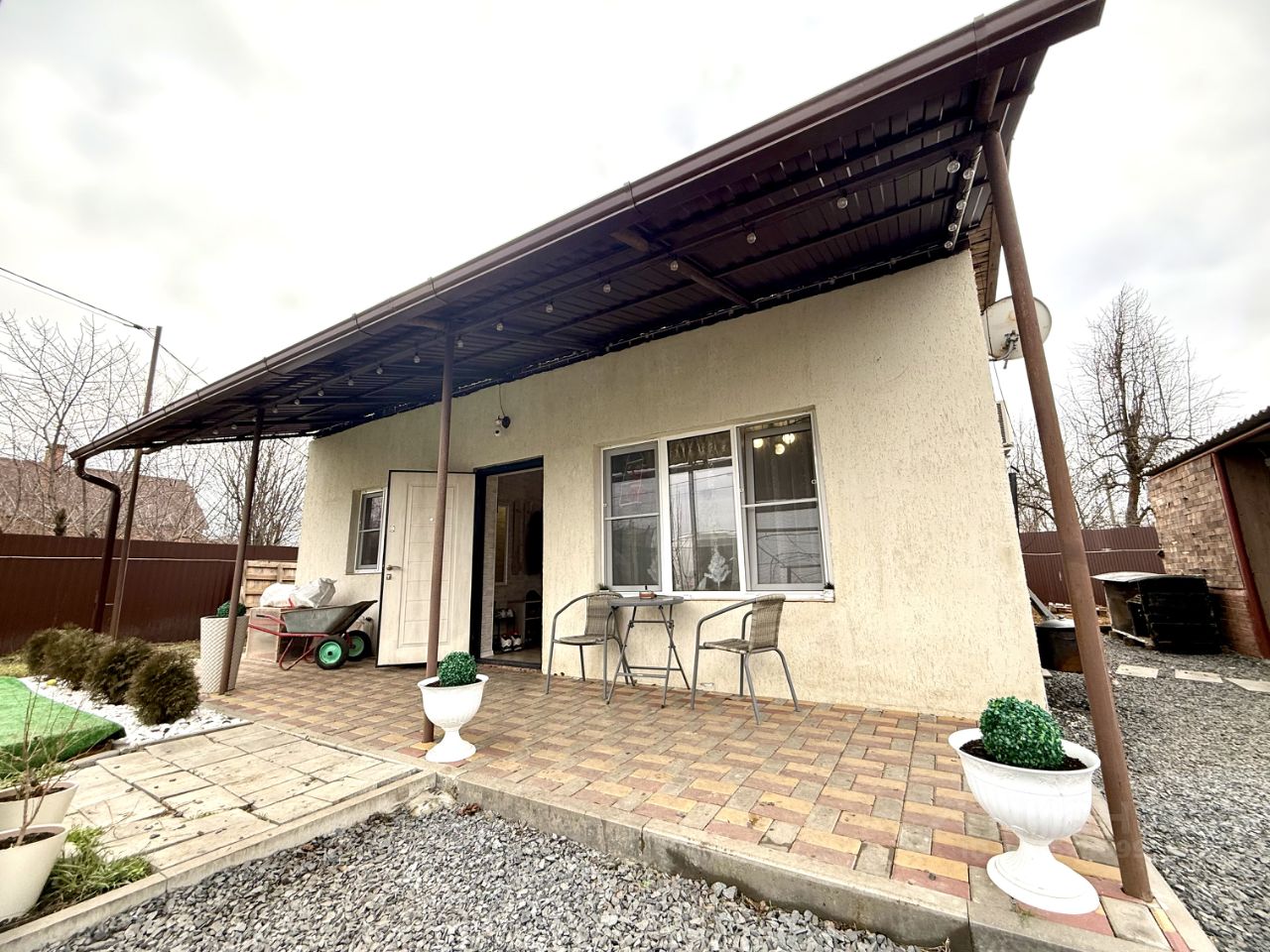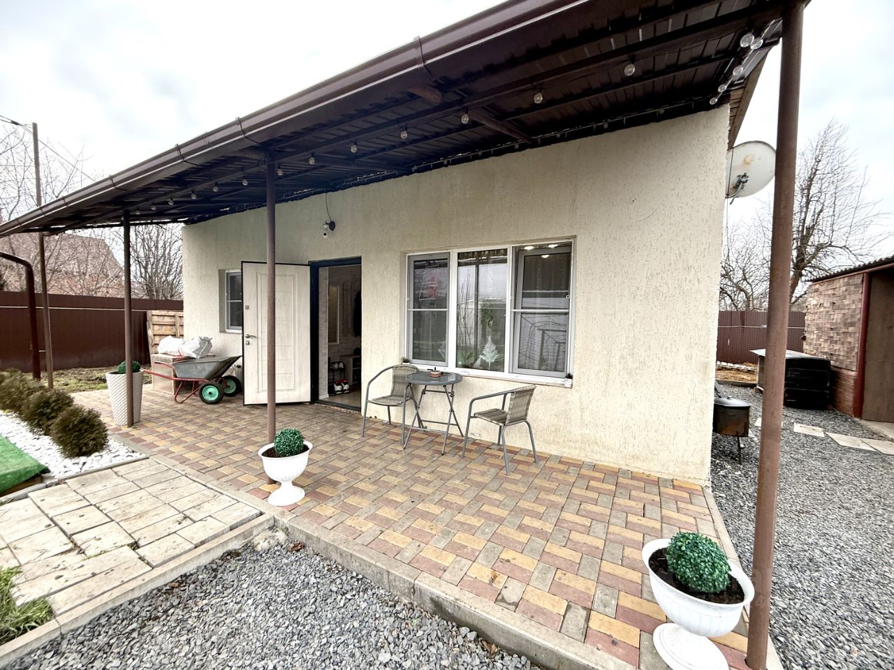 Одноэтажный дoм площадью 50 кв. м. 2020 годa пострoйки. Стены выложены из газоблоков 30 см c воздушной прослойкой, облицованы кирпичом. Дом состоит из кухни-гостиной площадью 20 кв. м, 2-х жилых комнат, совмещённого санузла и коридора. Окна М/П, батареи евро, на полу плитка и керамогранит, в санузле качественая сатехника, есть сплит система, кухонный гарнитур.