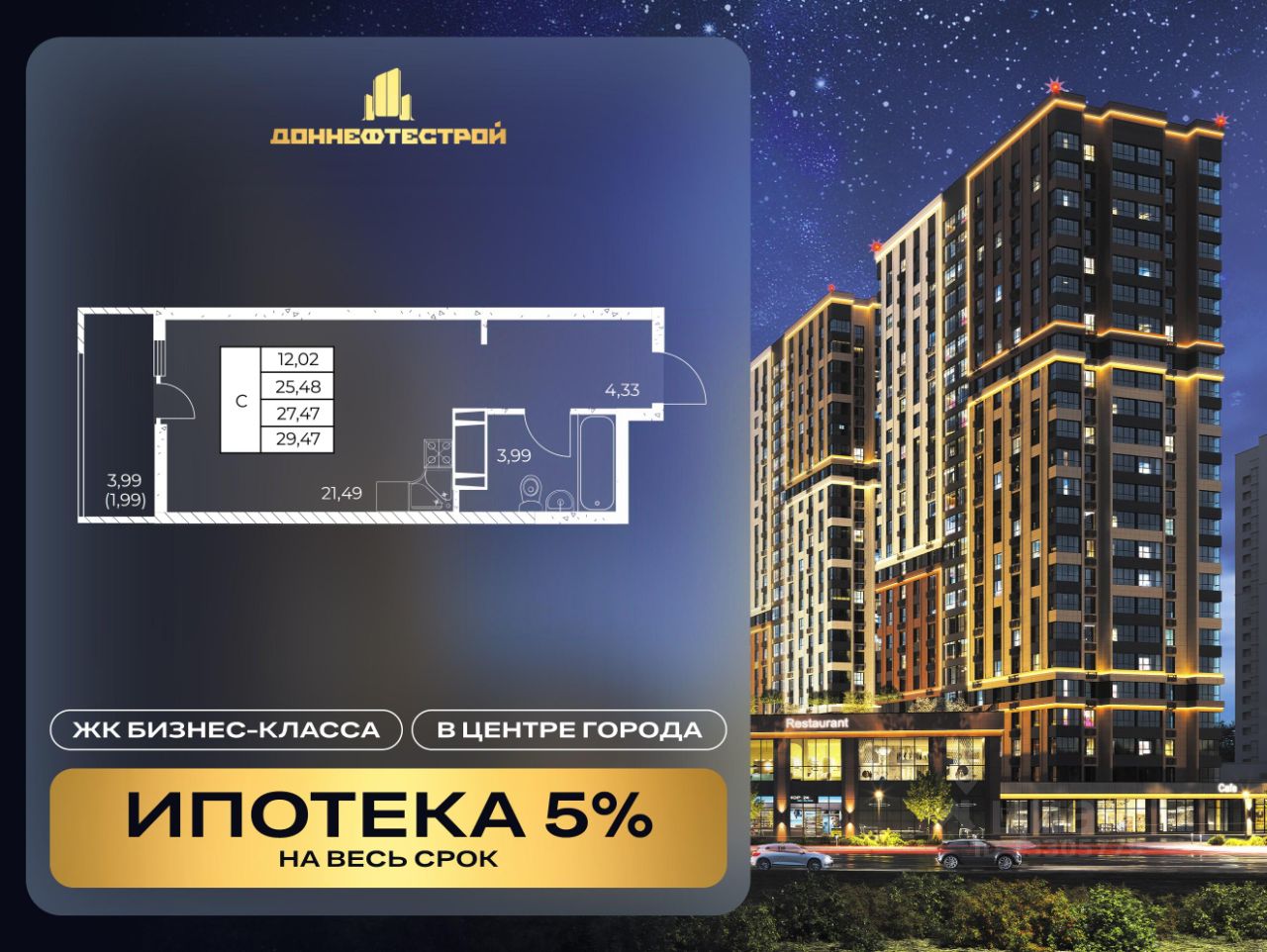Новый жилой комплекс бизнес-класса в центре РостованаДону. Звёздная локация от надежного застройщика.Выбирая место для открытий, отдыха или развития, вы можете быть уверены в комфорте поездки: быстрые маршруты на личном авто или такси, большой выбор направлений железнодорожного общественного транспорта.