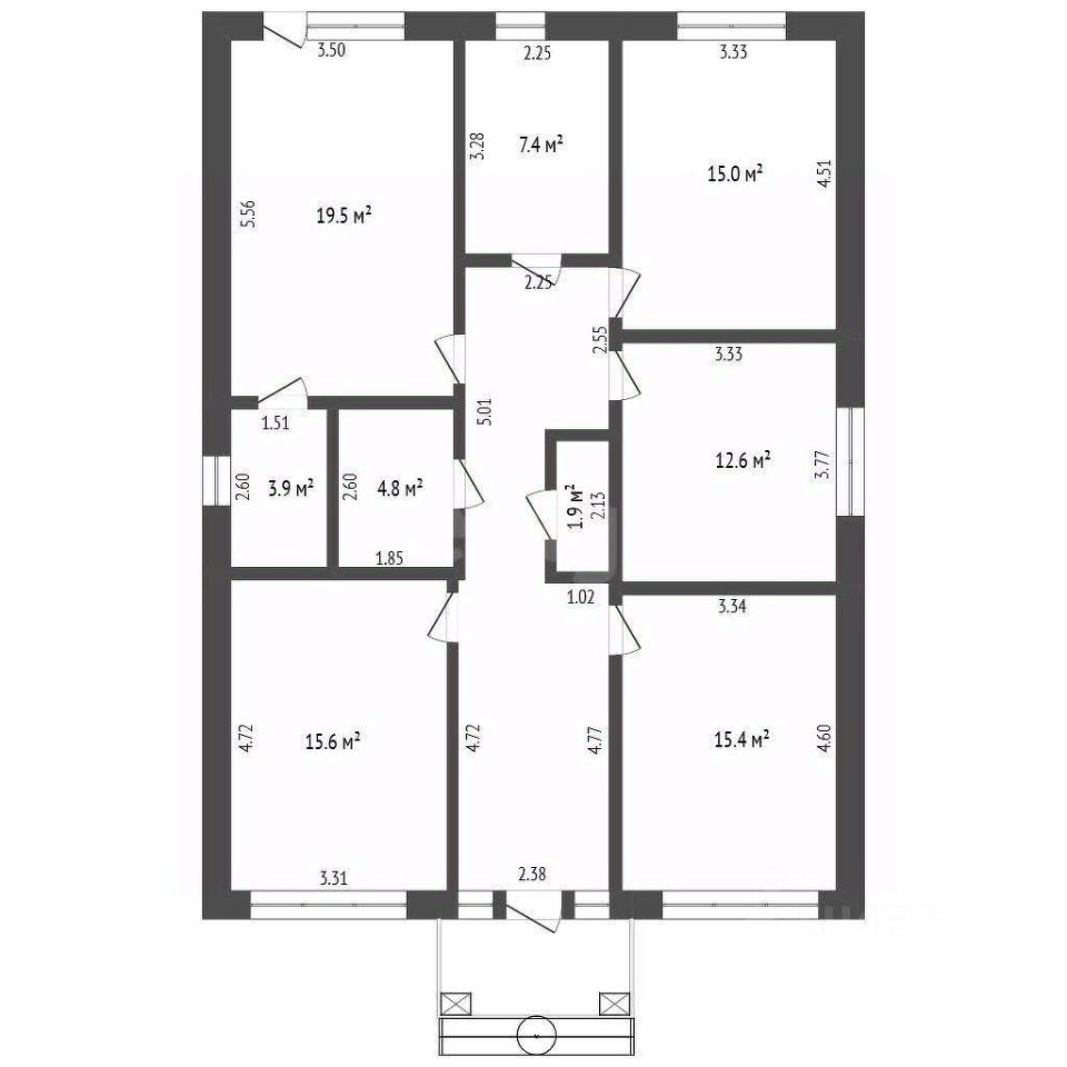 * Четыре светлых комнаты по 15 м² и одна уютная комната 12,6 м² — идеальные пространства для отдыха и работы.