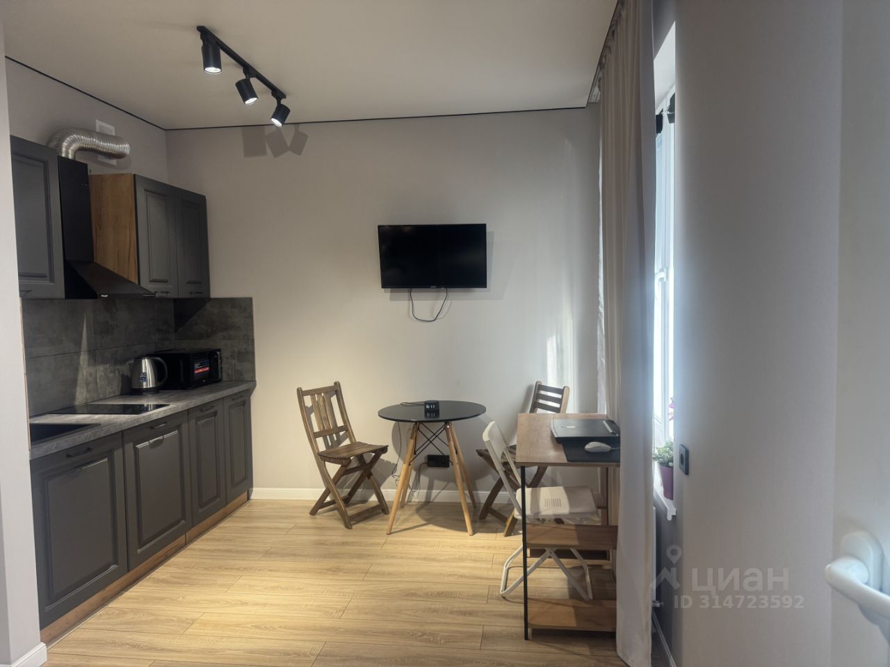 Квартира полностью укомплектована: телевизор, сплитсистема, микроволновка, чайник, варочная панель, шкаф, кровать с подьемным механизмом.