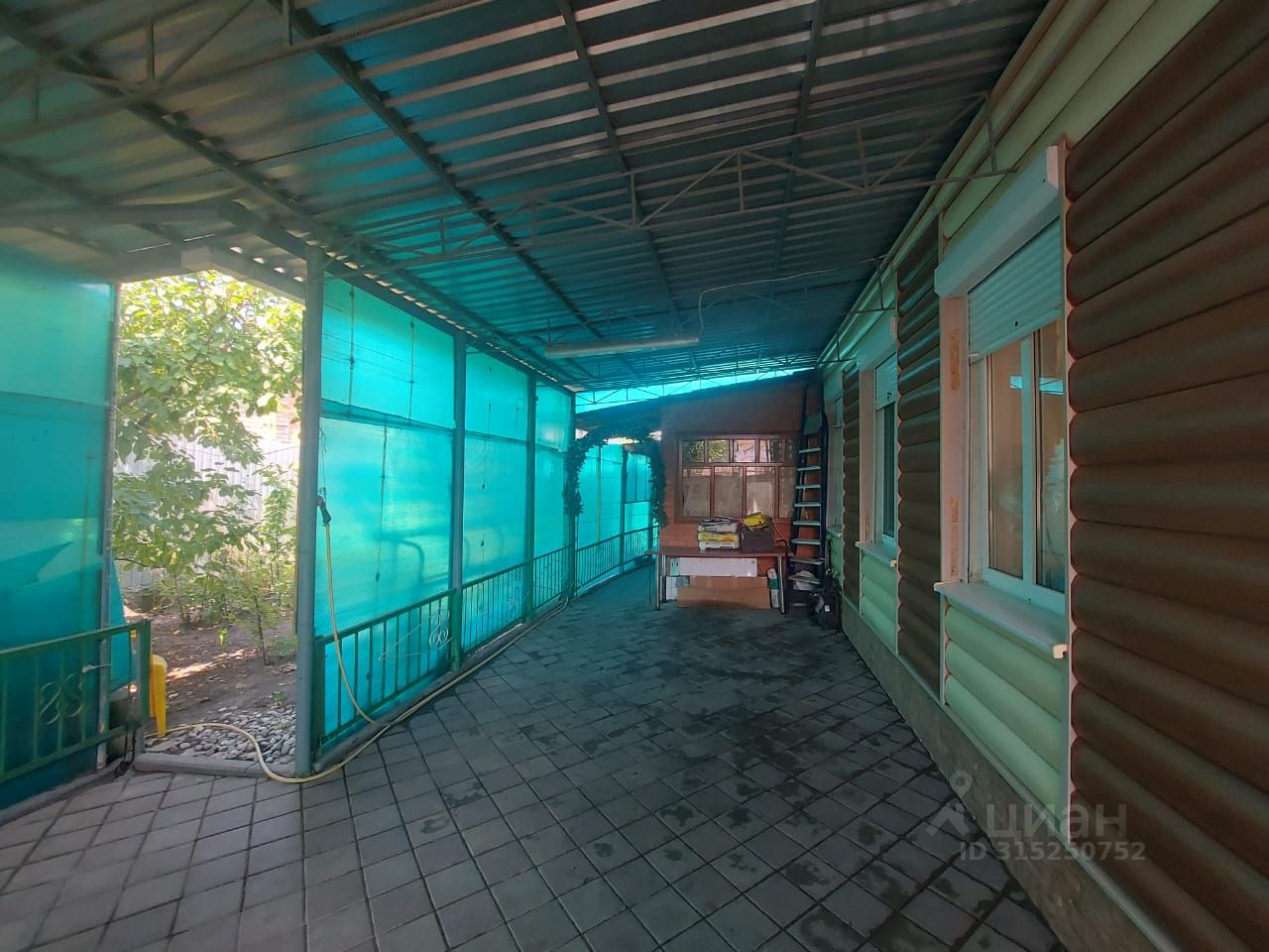 Во дворе большой навес, плитка.