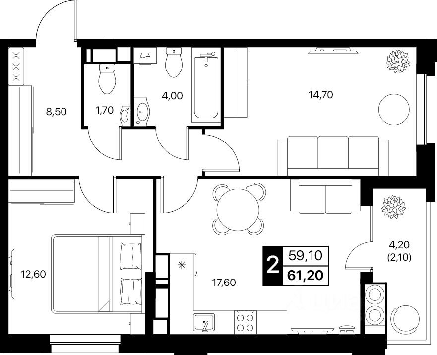 Общая площадь61,2 м2