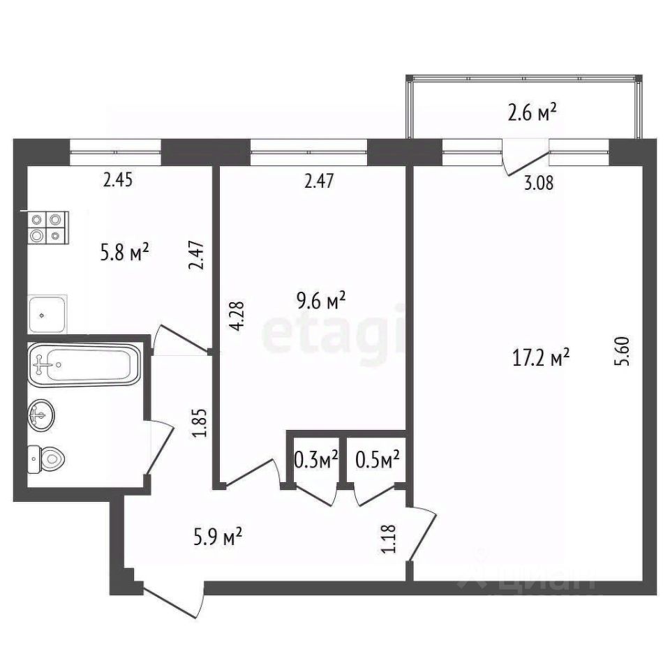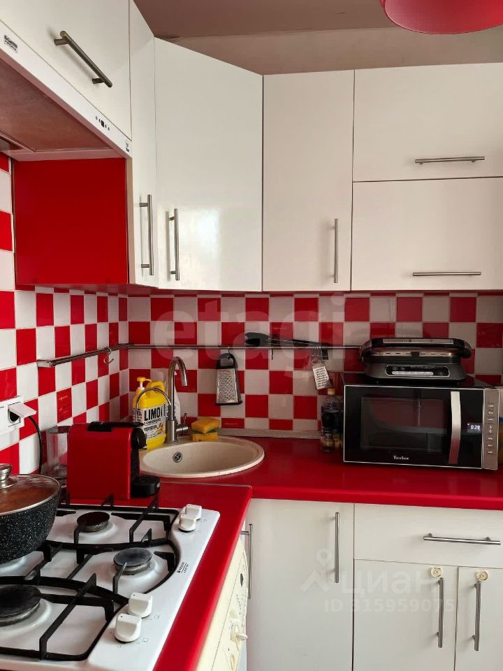 В квартире уже имеется необходимая мебель, включая кухонные гарнитуры и элементы для хранения одежды.