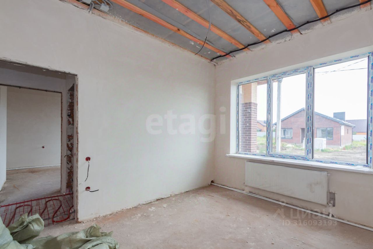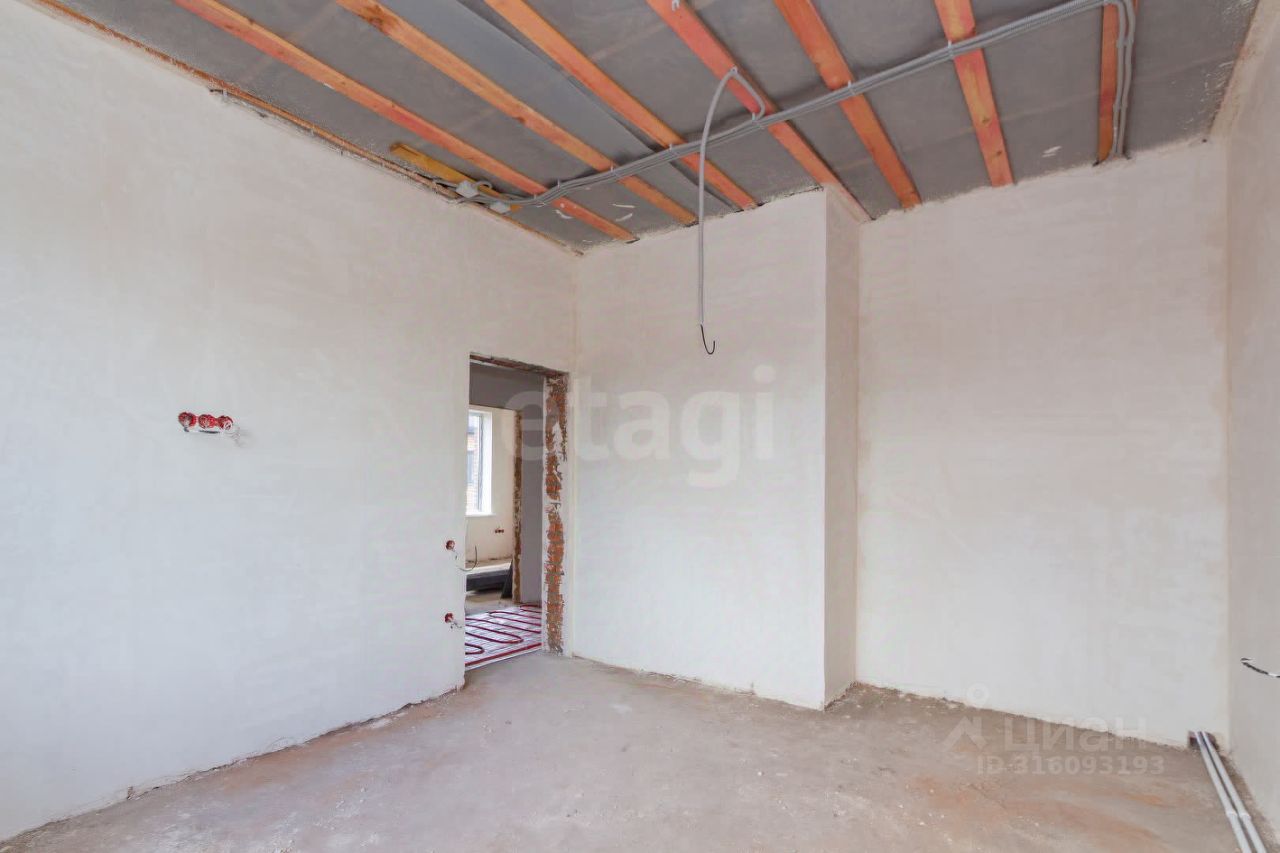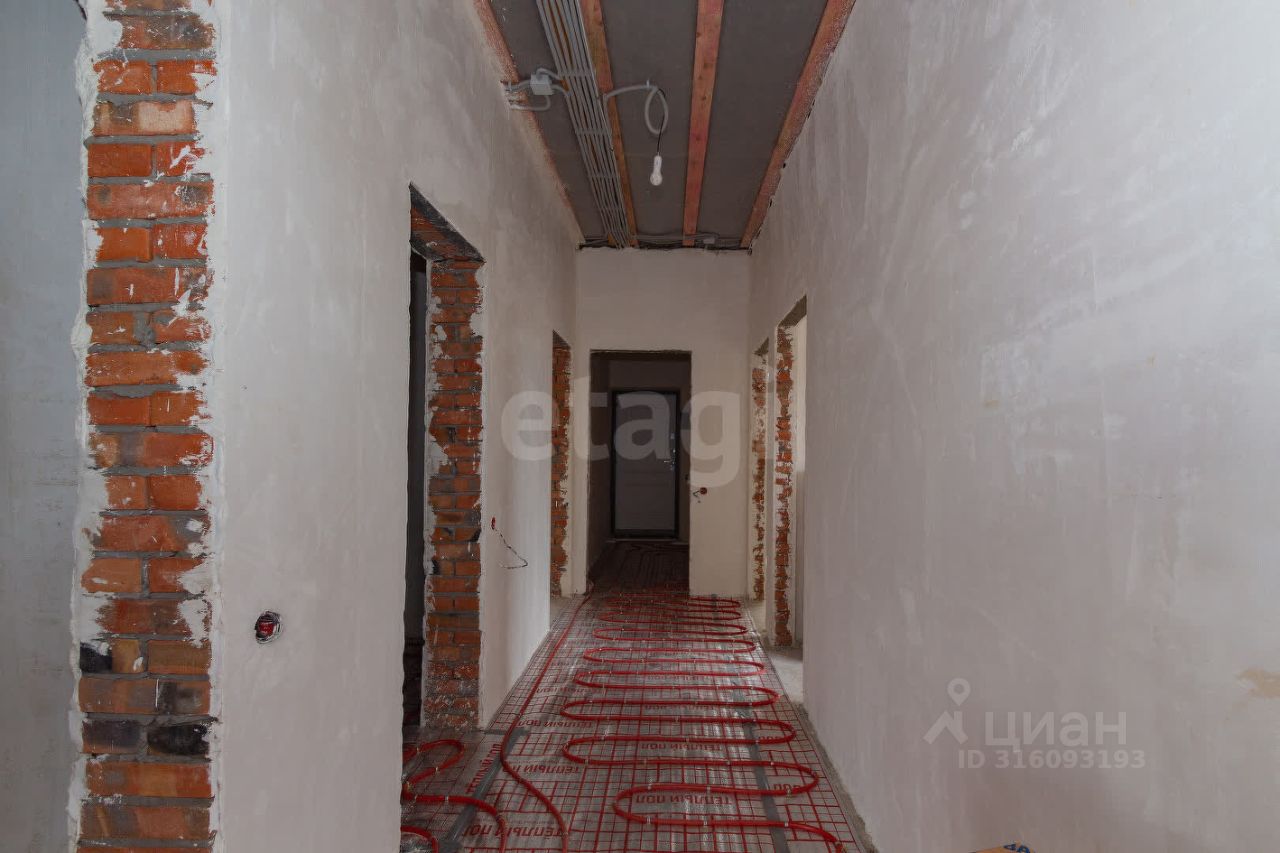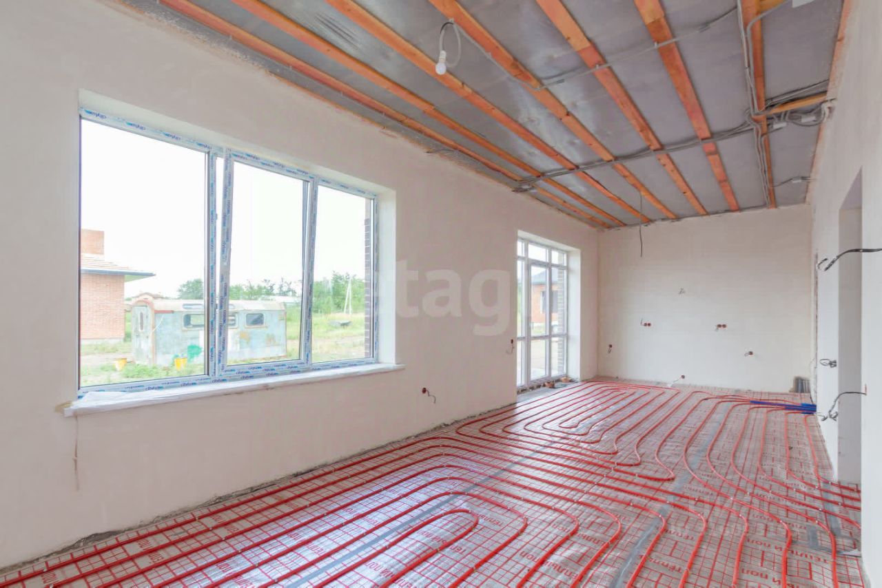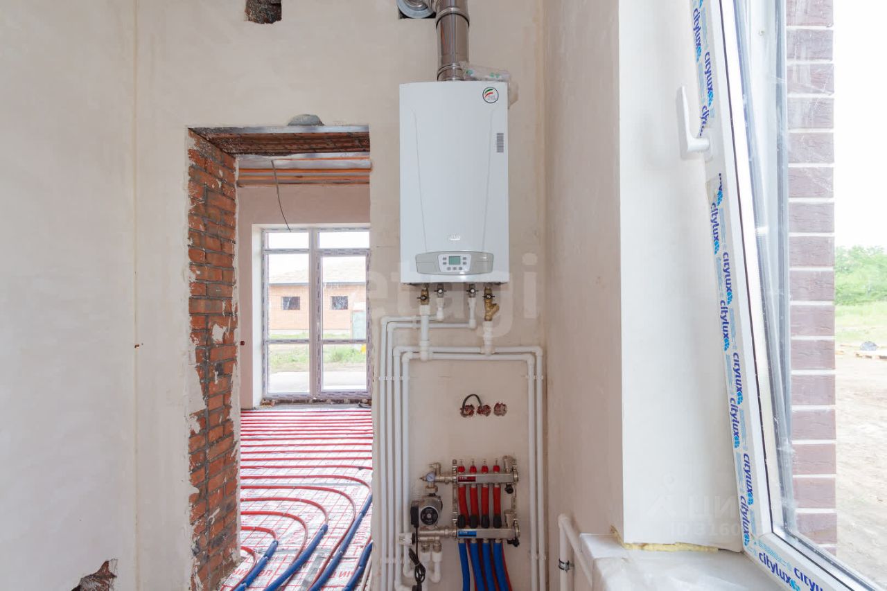 В доме выполнена чистовая стяжка, оштукатурены и отшлифованы стены в два этапа. Дом полностью подготовлен к оклейке обоев. Все черновые работы выполнены. Газ, свет и вода проведены. В доме тёплый пол и газовый котёл.