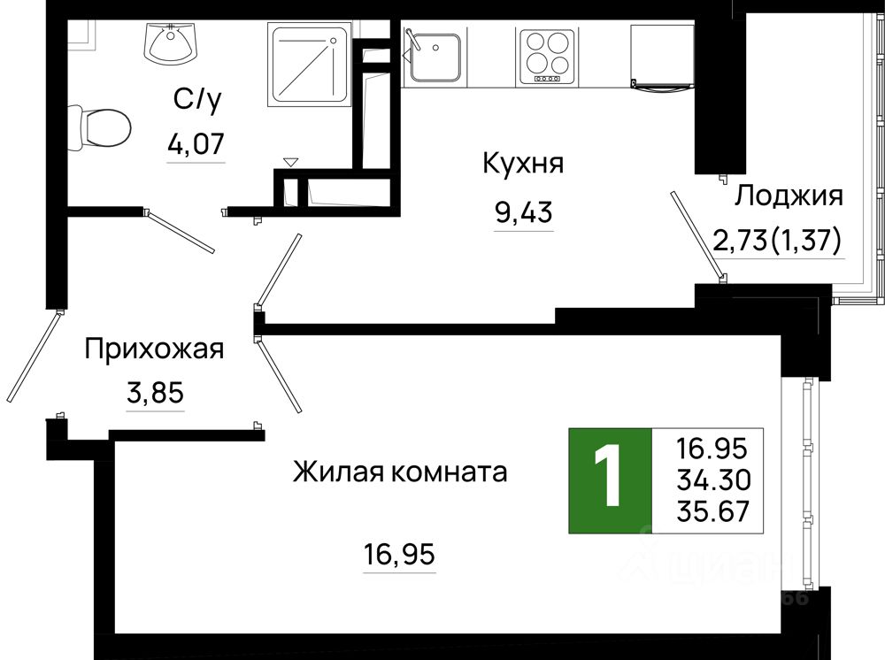 Общая площадь35,67 м2