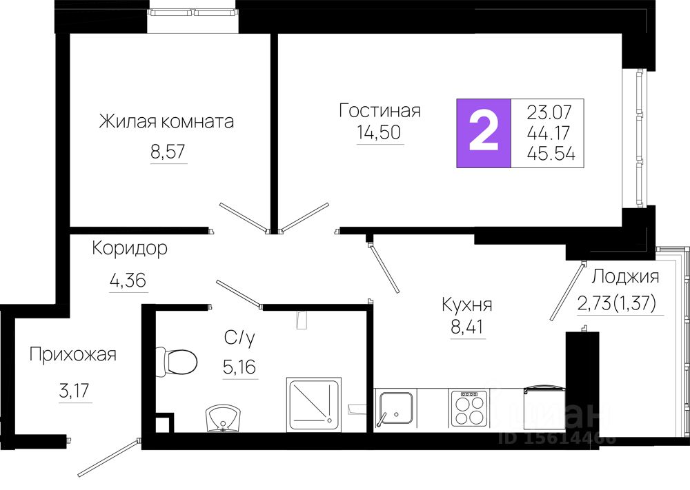 Общая площадь45,54 м2