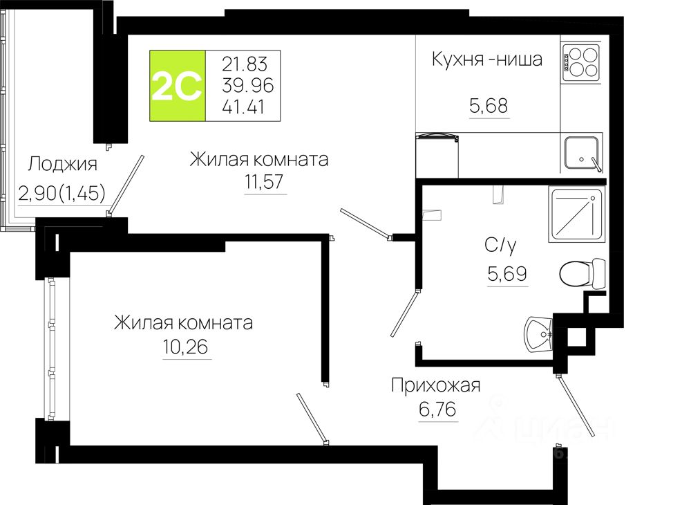 Общая площадь41,41 м2