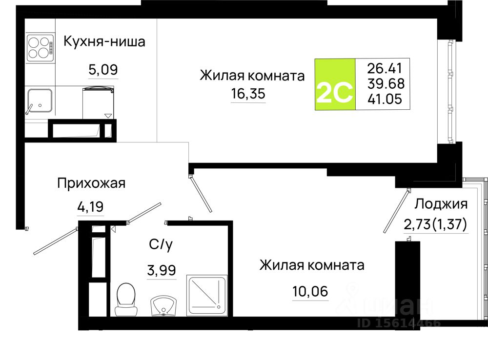 Общая площадь41,05 м2