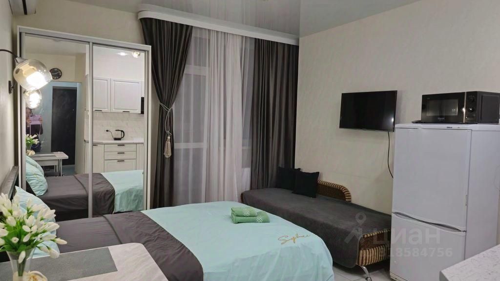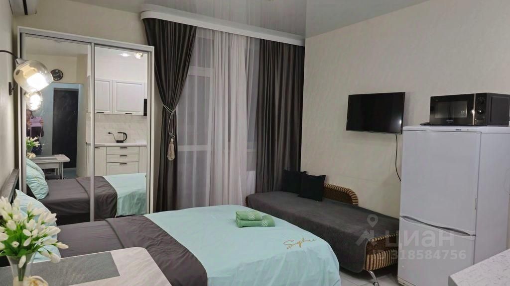 Сдаётся уютная студия с евроремонтом, расположенная на 23-м этаже современного 26-этажного дома. Общая площадь квартиры составляет 30 кв. м. Это идеальный вариант для одного человека или пары, ценящих комфорт и стиль. Окна выходят во двор, что обеспечивает тишину и спокойствие.