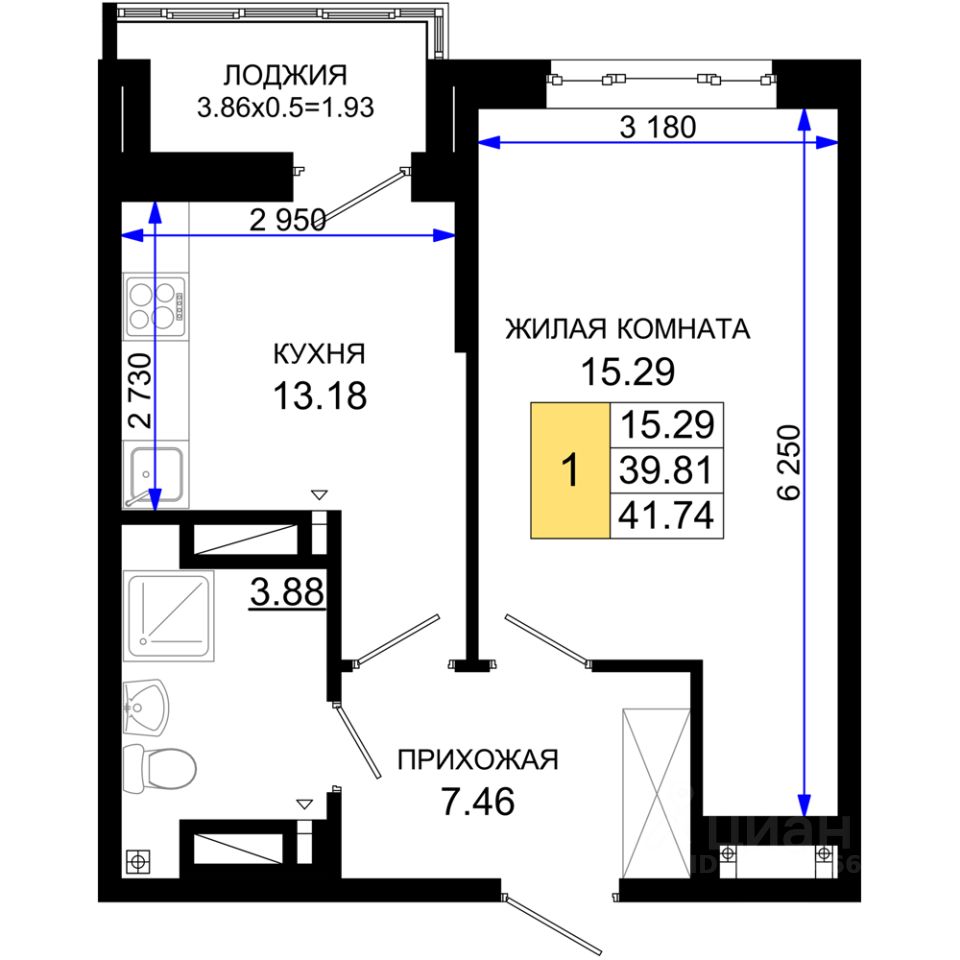 Общая площадь41,74 м2