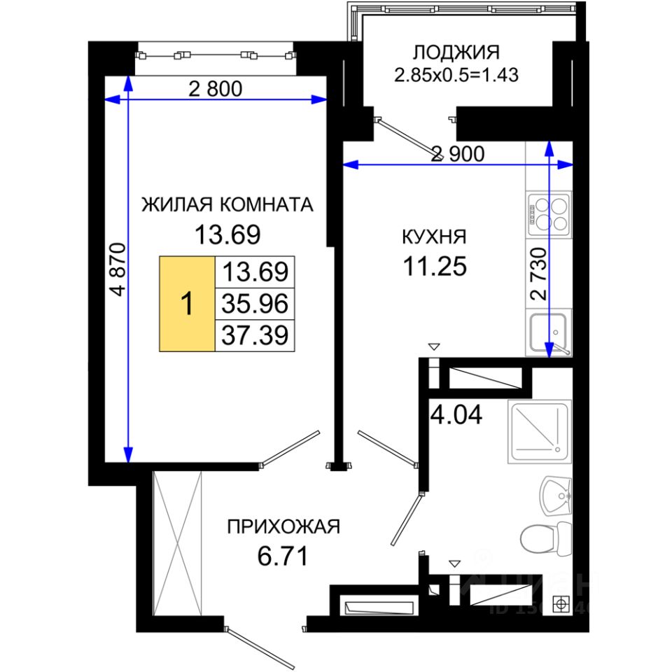 продам 1-к, Элеваторный переулок, 6/2б8 637 090 ₽