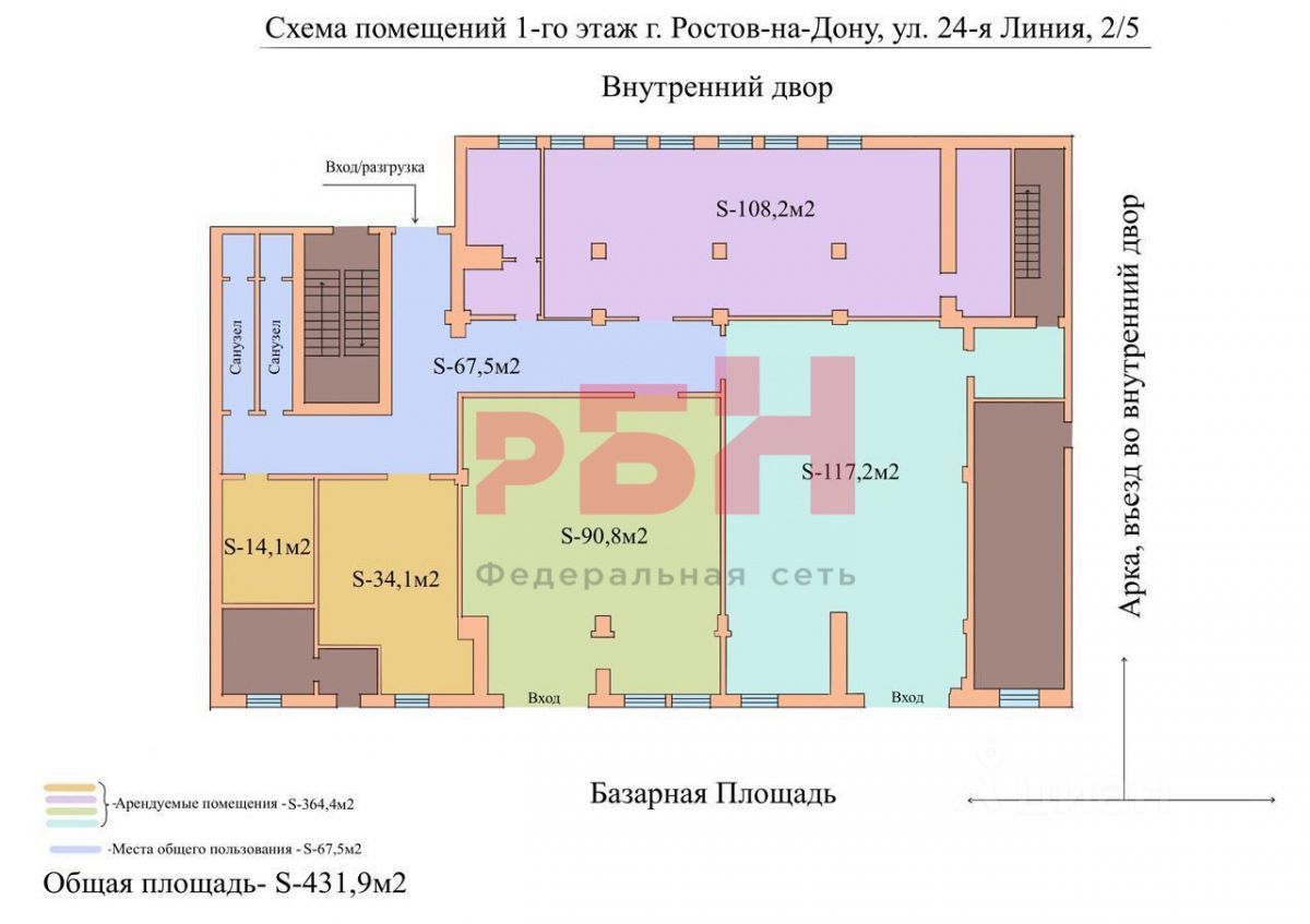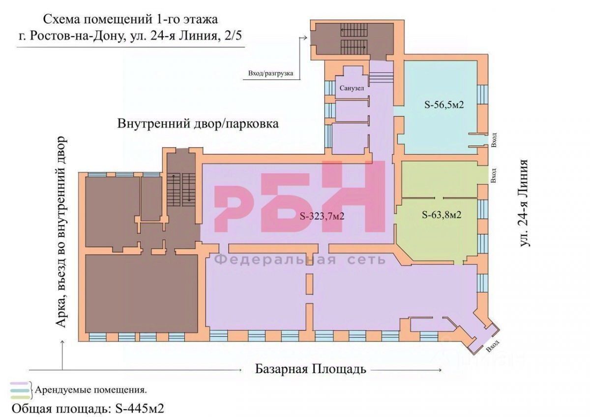 Помещение свободного назначения в одном из самых оживлённых районов города площадью 431, 9 кв. м по адресу г. Ростов-на-Дону, улица 24-я Линия, 2/5