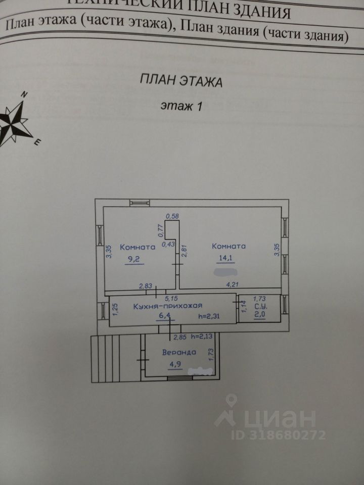 2 комнаты, металлопластиковые окна, кухонная зона, коридор, ванна, санузел, веранда.