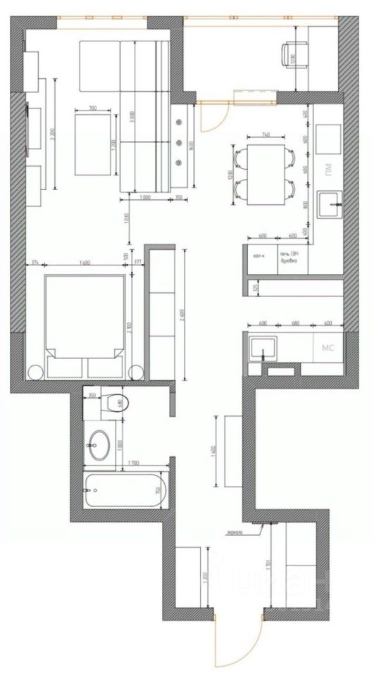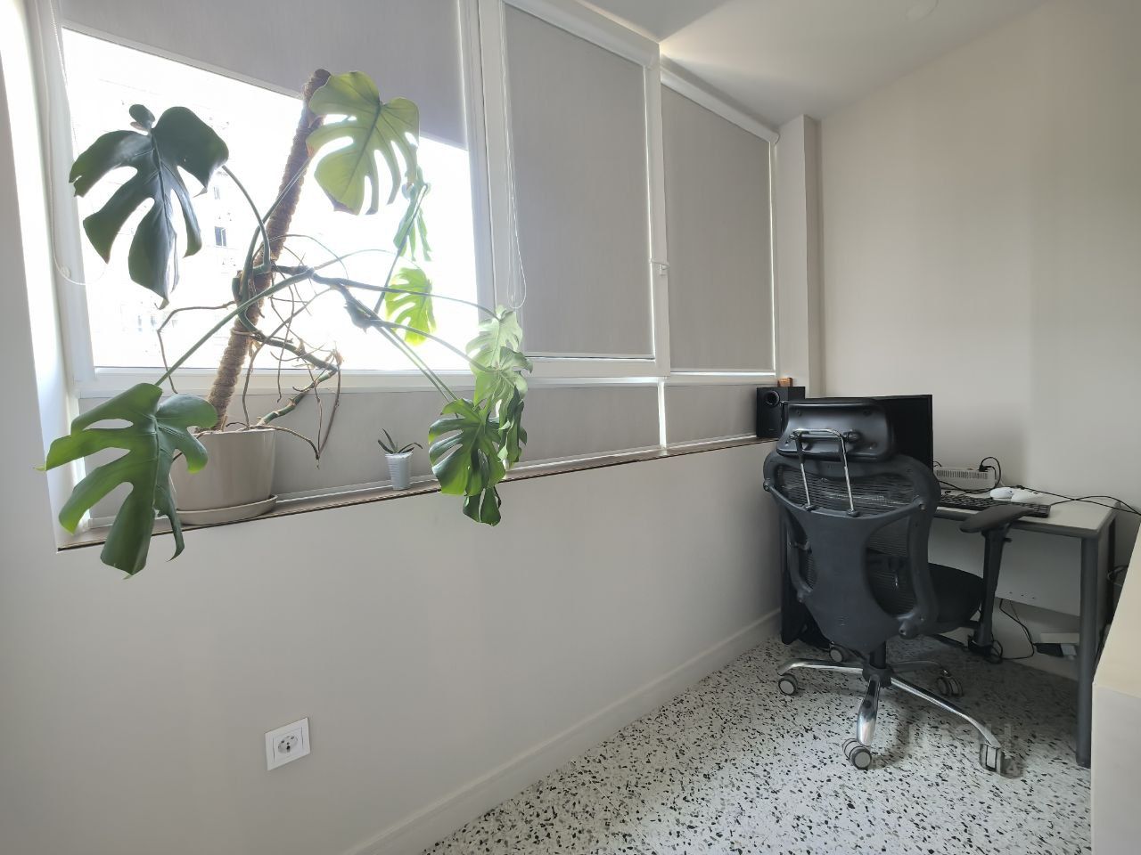 Фишка данной квартиры техническая комната, в которой установлен накопительный бойле, стиральная машинка, кладовая зона, и оборудовано место для мытья грязной обуви и технических нужд. Балкон используется как рабочий кабинет, что позволяет работать в любое время.