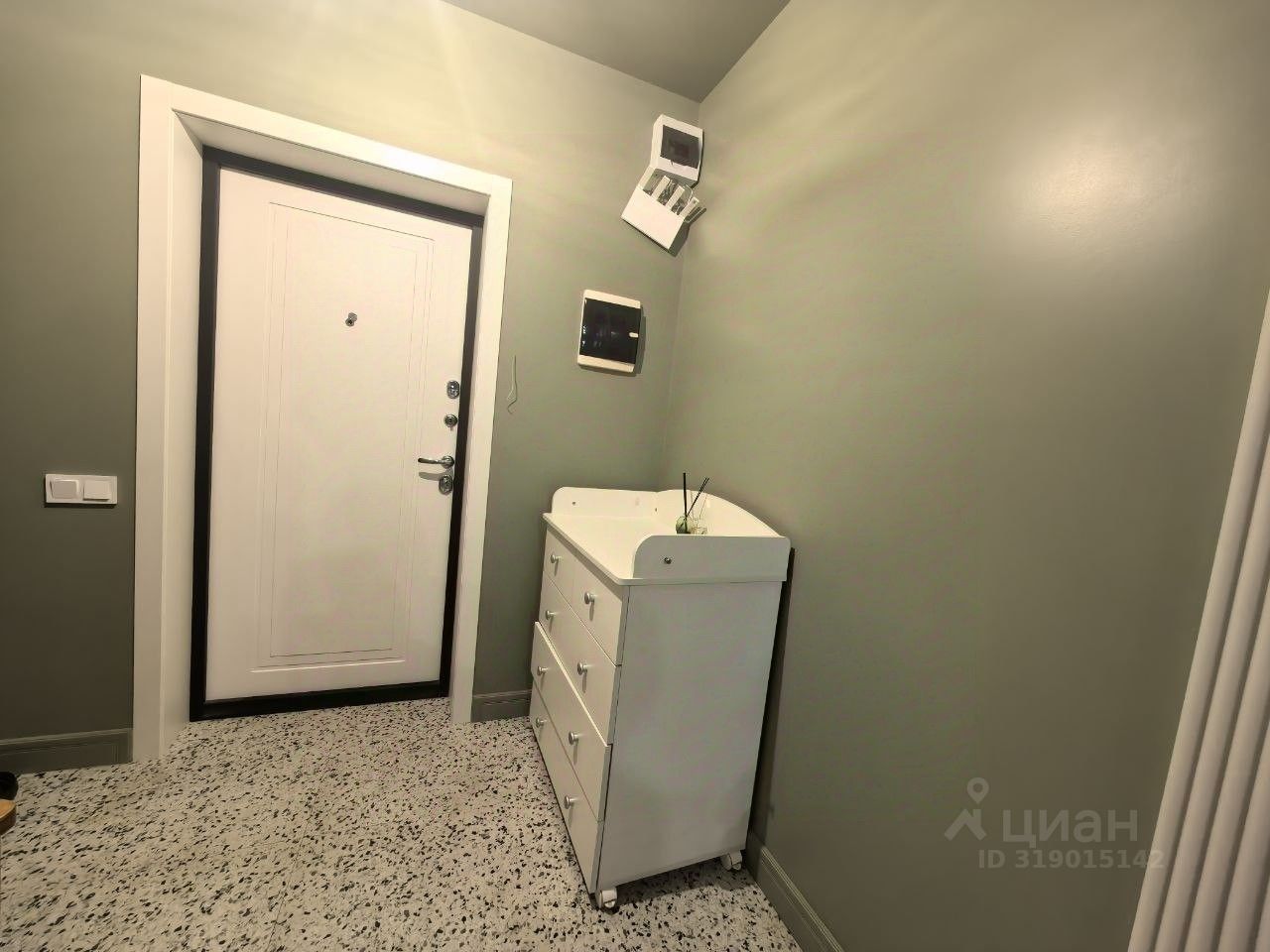 Есть возможность изолировать спальное место стеклянной перегородкой в металлическом корпусе, закладная балка уже смонтирована под потолком для этой цели. Все смежные стены с соседями из кирпича и монолитного бетона, что дополнительно снижает уровень постороннего шума. На лестничной площадке всего 5 квартир.