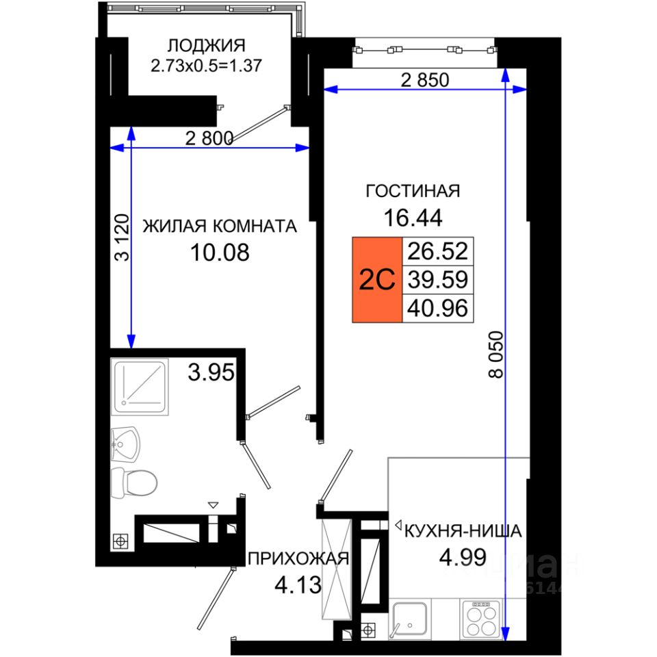 продам 1-к, Элеваторный переулок, 6/39 175 040 ₽