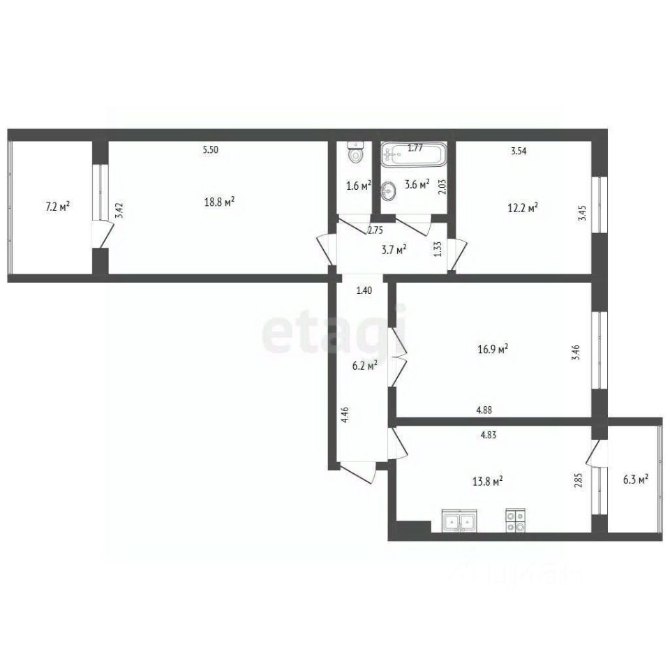Продается просторная трехкомнатная квартира площадью 84 кв. м на 9 этаже 10-этажного кирпичного дома в престижном районе ''Золотой квадрат'' на Западном. Объект находится в отличном состоянии, готов к заселению — стены ровные, сантехника и электрика в рабочем порядке, установлены металлопластиковые окна. Планировка функциональная: изолированные комнаты (18, 15 и 12 кв. м), кухня 14 кв. м с выходом на балкон (4 кв. м), раздельный санузел, прихожая с кладовой. Высота потолков 2,7 м, в комнатах хорошая инсоляция за счет панорамных окон.