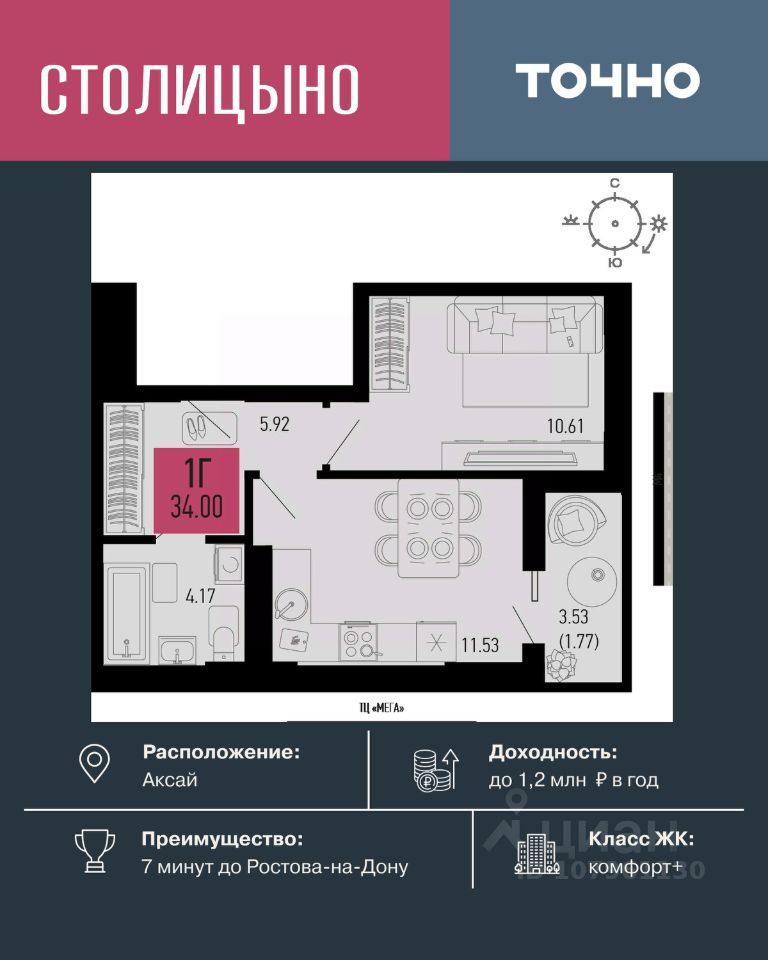 продам 1-к, Аксай5 100 000 ₽