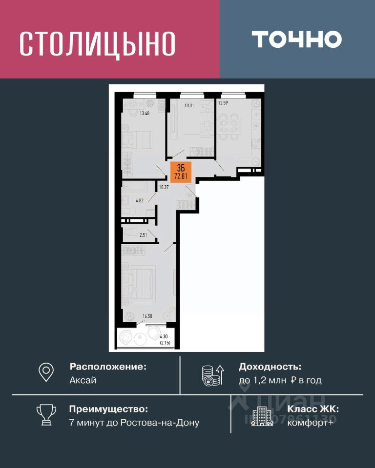 продам 3-к, Аксай9 465 300 ₽