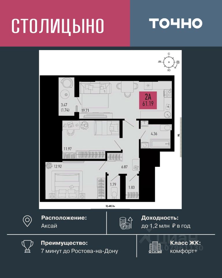 продам 2-к, Аксай9 912 780 ₽
