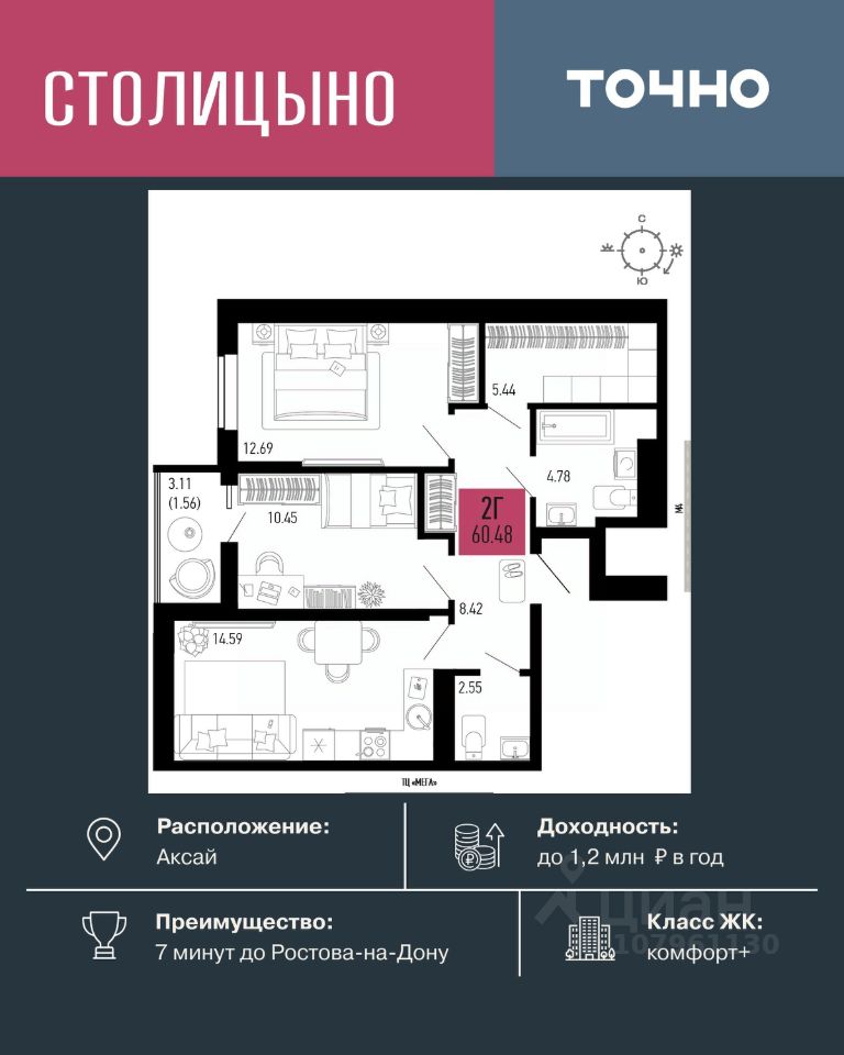 продам 2-к, Аксай8 380 000 ₽