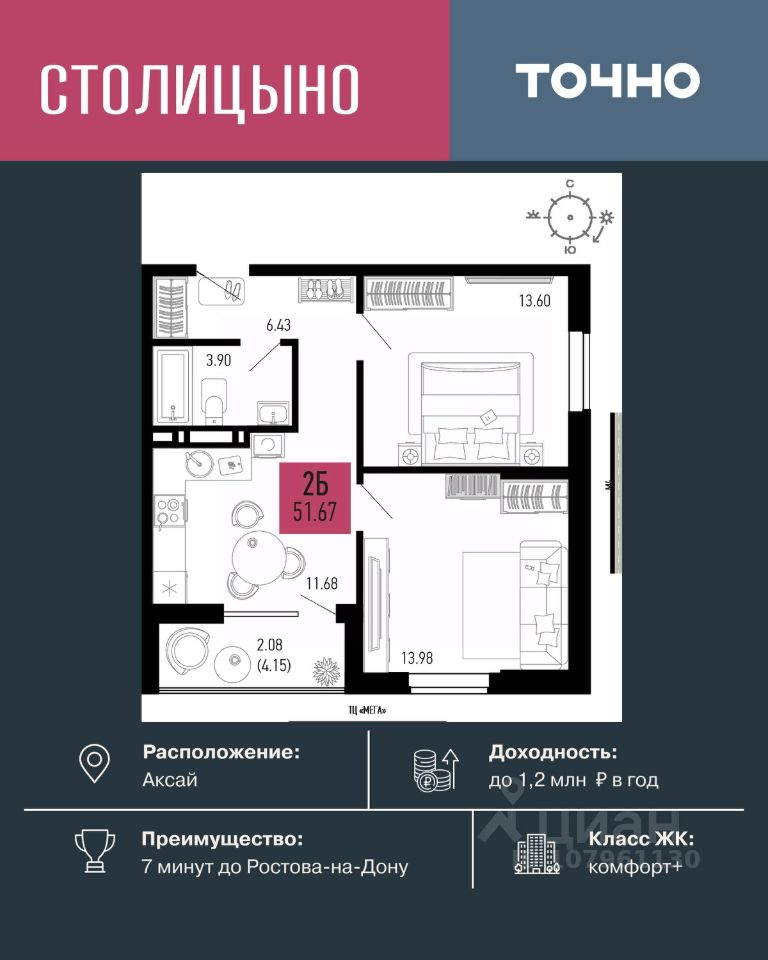 продам 2-к, Аксай6 872 110 ₽