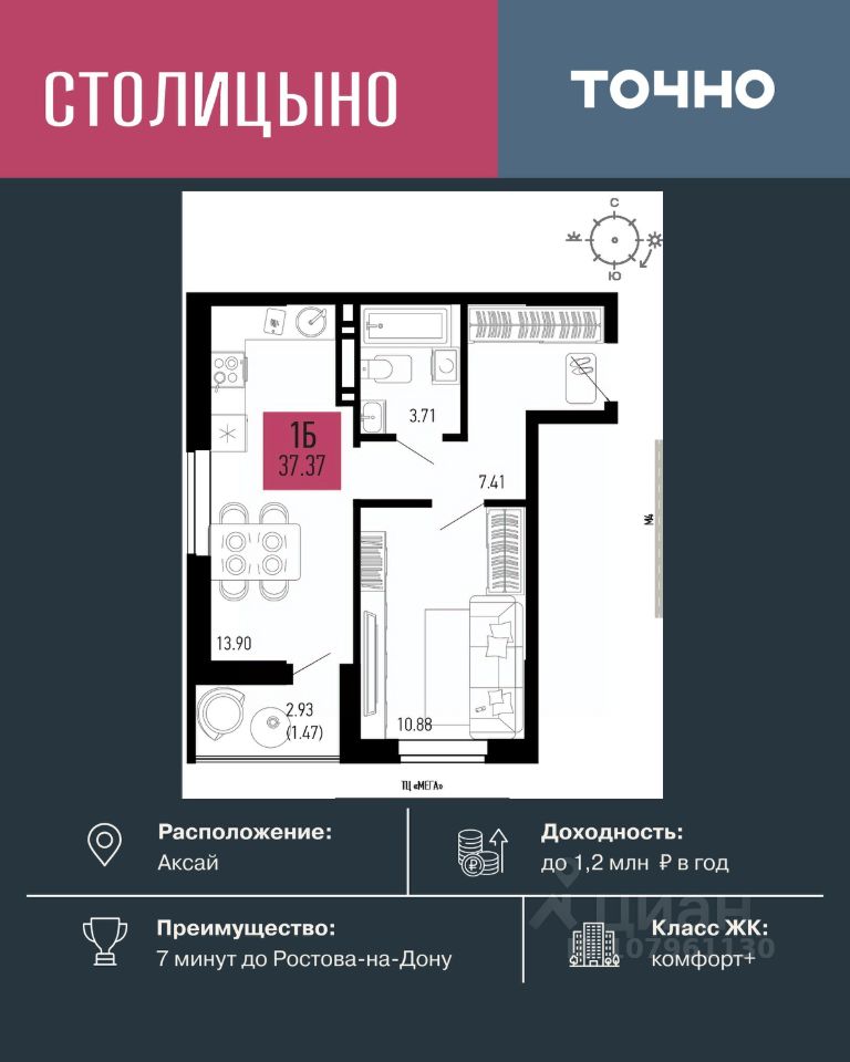продам 1-к, Аксай5 725 000 ₽