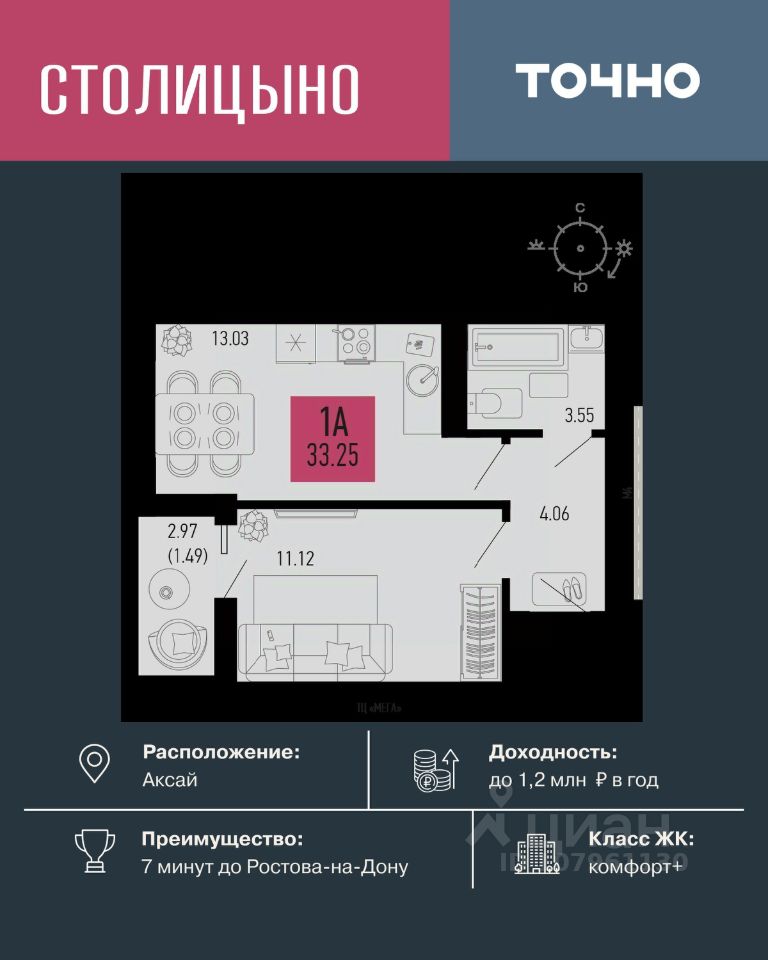 продам 1-к, Аксай4 892 000 ₽