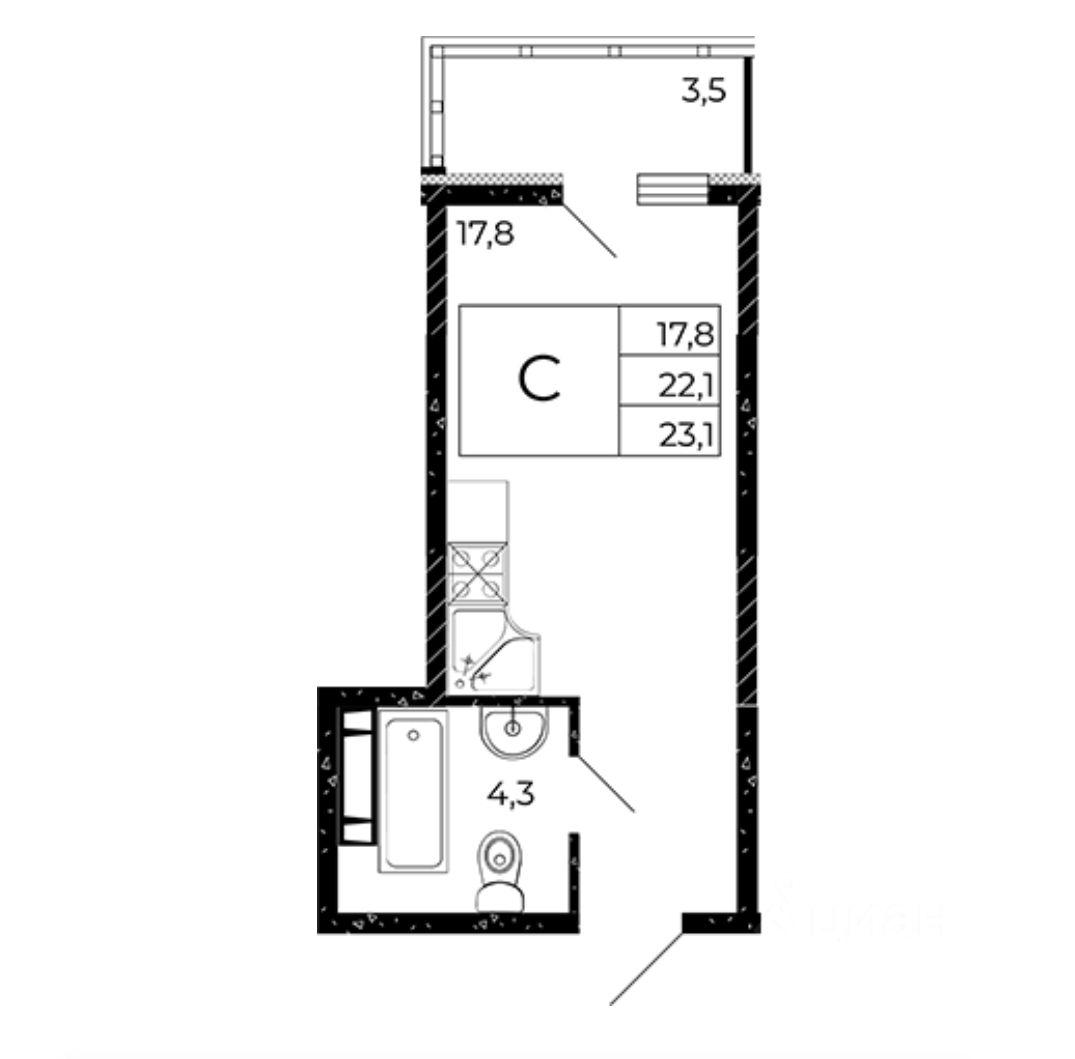 Продаётся студия в сданном доме с лоджией в монолитно-кирпичном доме, построенном в 2025 году.