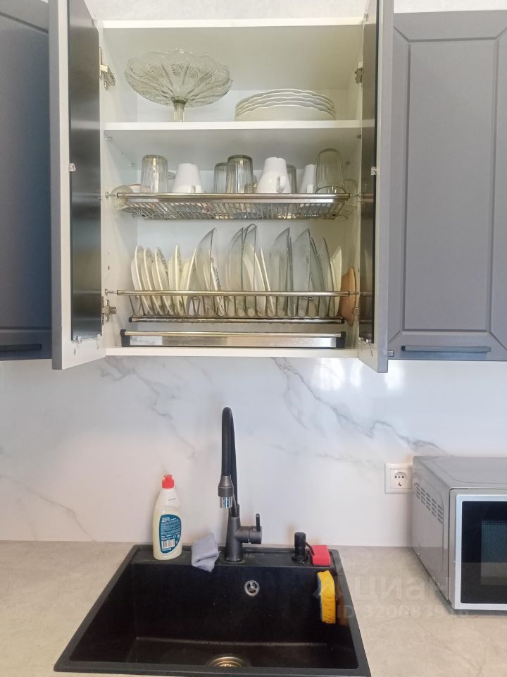 Квартира оборудована мебелью и техникой. Есть посуда и столовые приборы
