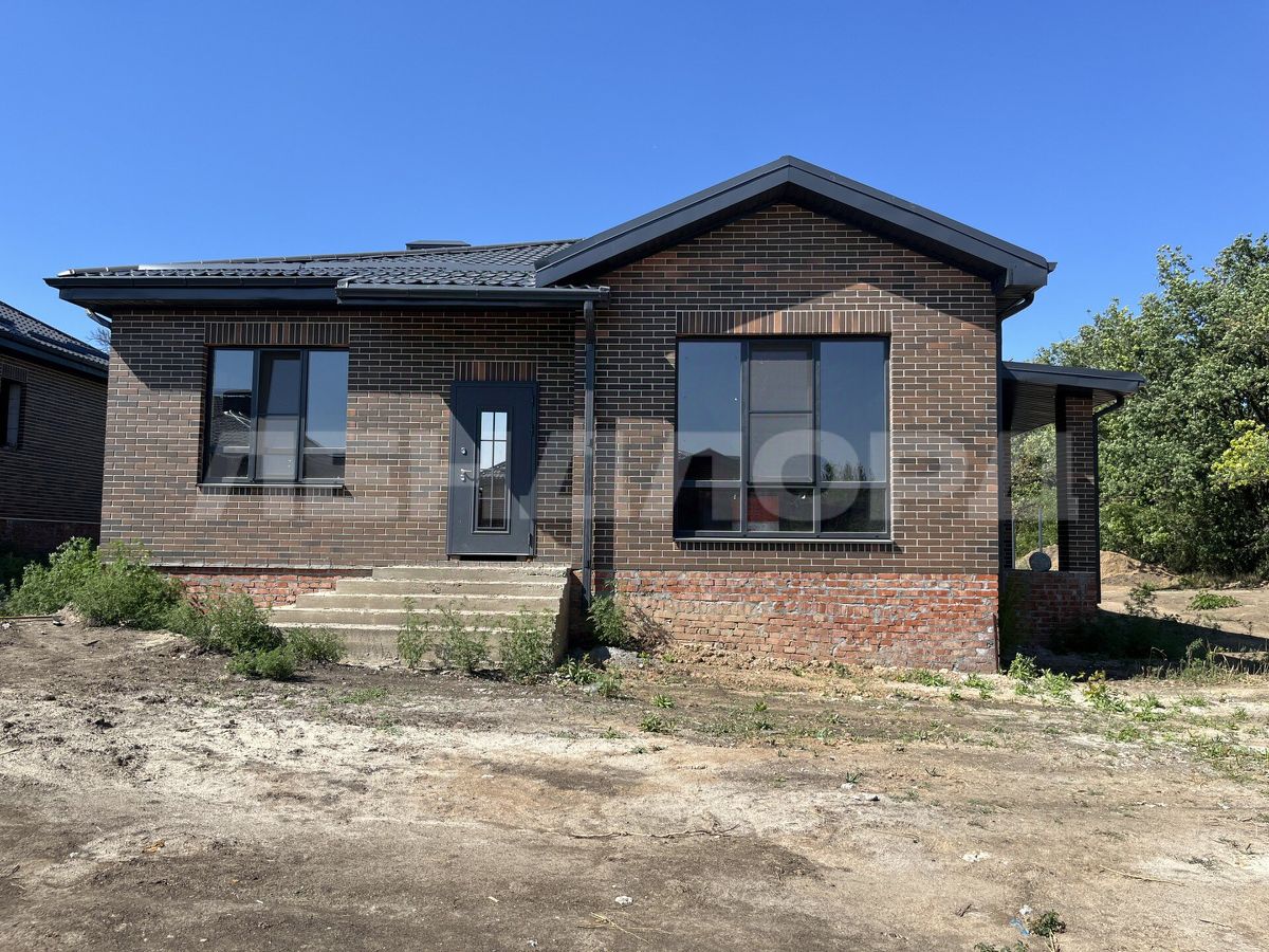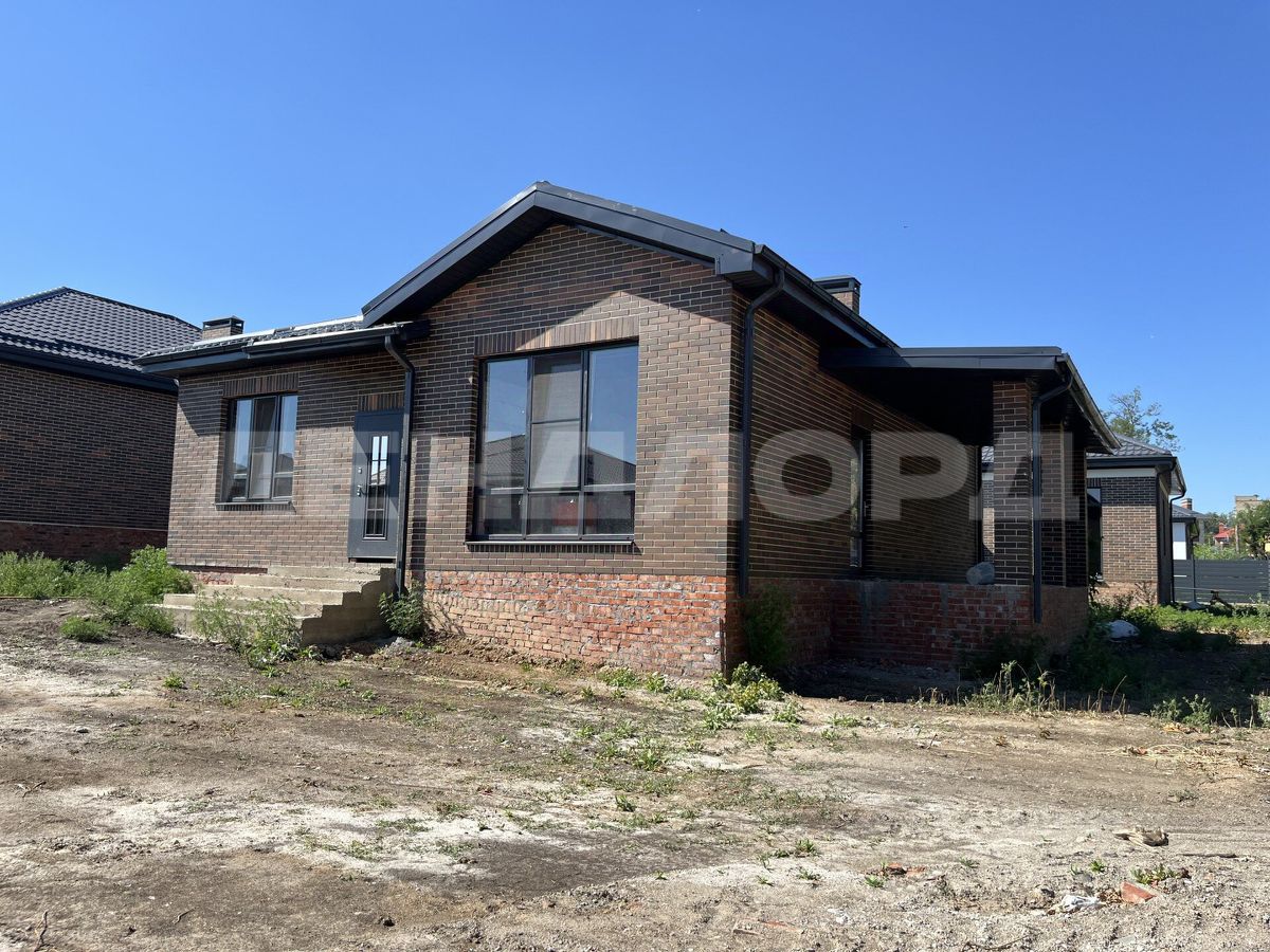 О ДОМЕ: современный проект одноэтажного дома, с тремя спальнями, кухней-столовой, санузлом, котельной, холлом, с выходом на террасу из кухни. Дома полностью кирпичные, без оштукатуренных элементов.