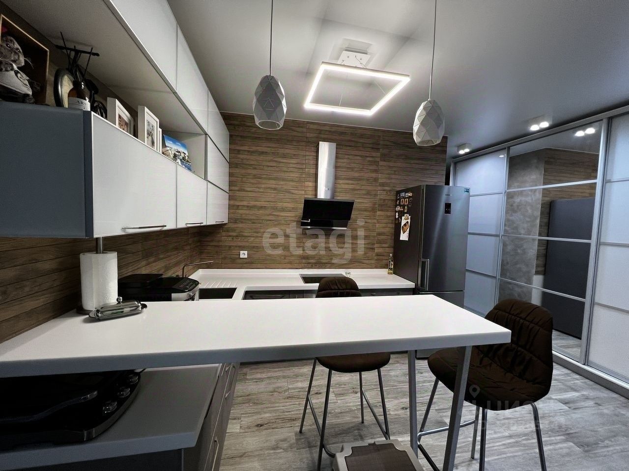 Продается -2-х комнатная квартира, с ультра-современным ремонтом в стиле техно!Для ремонта использовались качественные, дорогие материалы.Зона кухни объединена с гостиной. Таким образом кухня-гостиная имеет площадь 45 метров. Квартира продается вместе с кладовой комнатой на этаже. Установлен теплый пол.Территория комплекса закрытая,есть детская площадка, подземный и наземный паркинг.При продаже вся техника и мебель остается. Есть бойлер. Кладовая 2.8 кв.м. Обустроена стеллажами.Звоните! С удовольствием проведу для Вас показ этой красавицы!